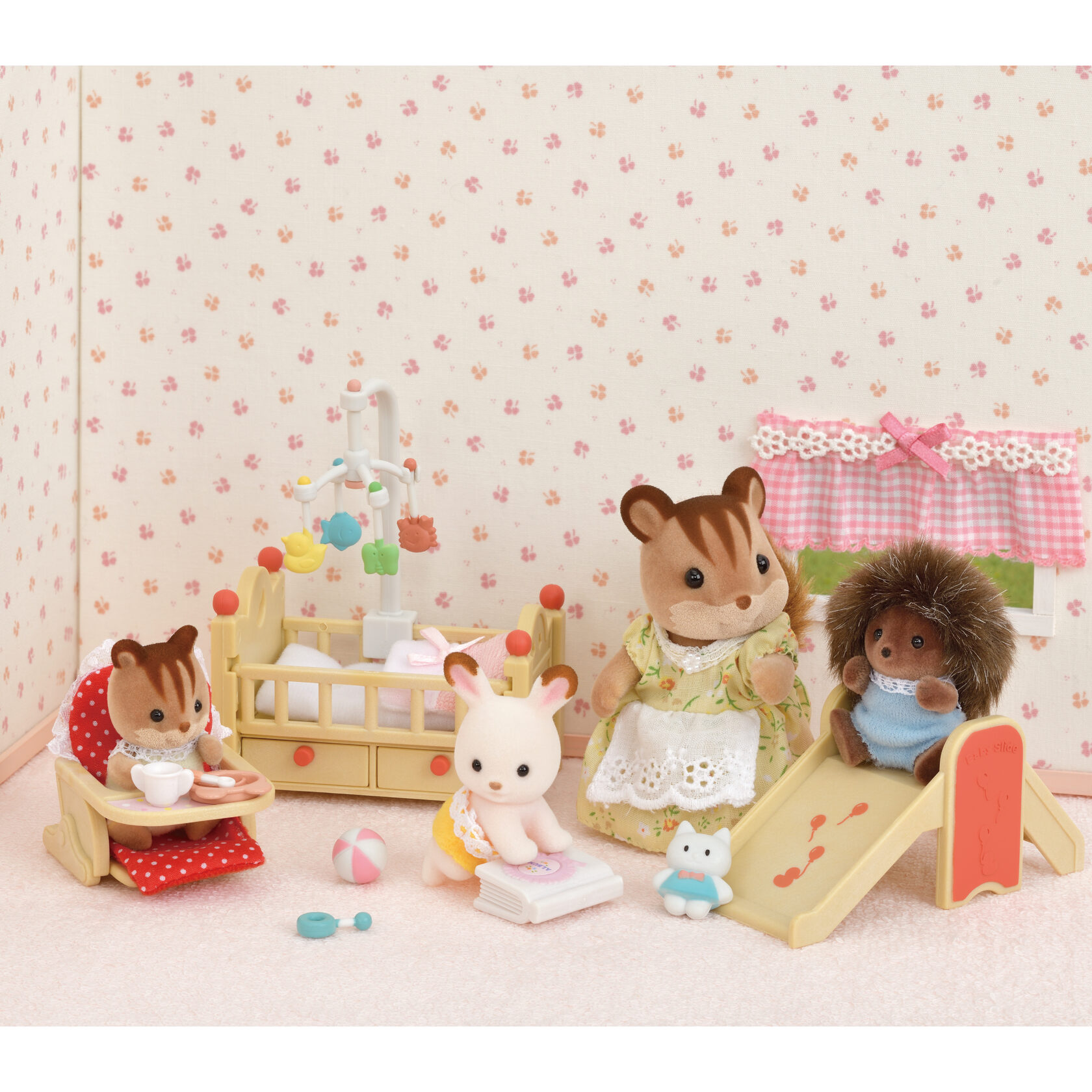 Ігровий набір Меблі для дитячої кімнати Sylvanian Families 5436 допоможе придумати багато цікавих сюжетів про життя братиків і сестричок сімейства Сільваніан. Покатайте Їжачка на гірці, пограйте в м'яч з Білченям, покажіть альбом Шоколадному кролику, а потім погодуйте і покладіть спати маленького Кролика. Придбайте додаткові меблі, предмети та фігурки, щоб гра стала ще більш захоплюючою.