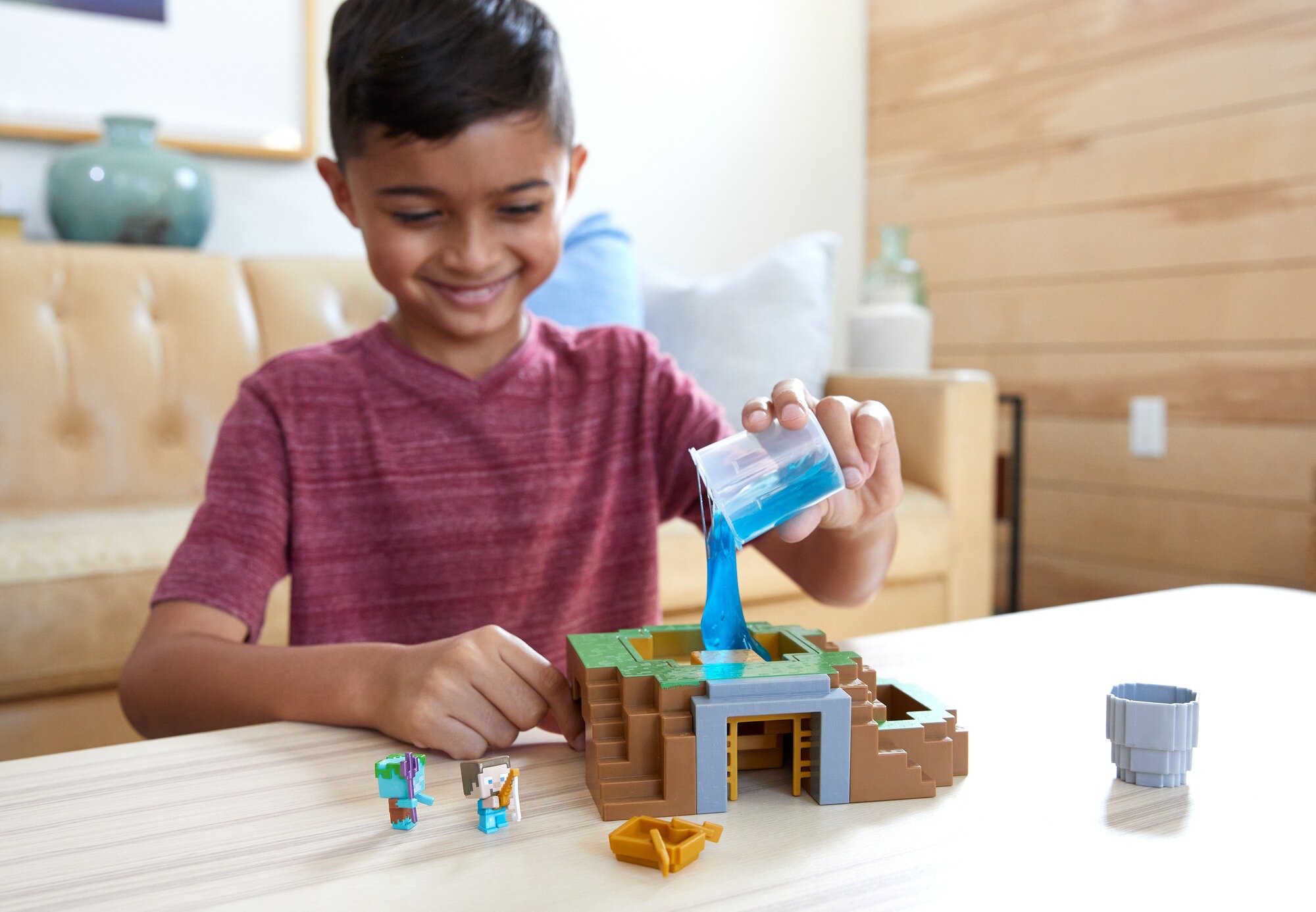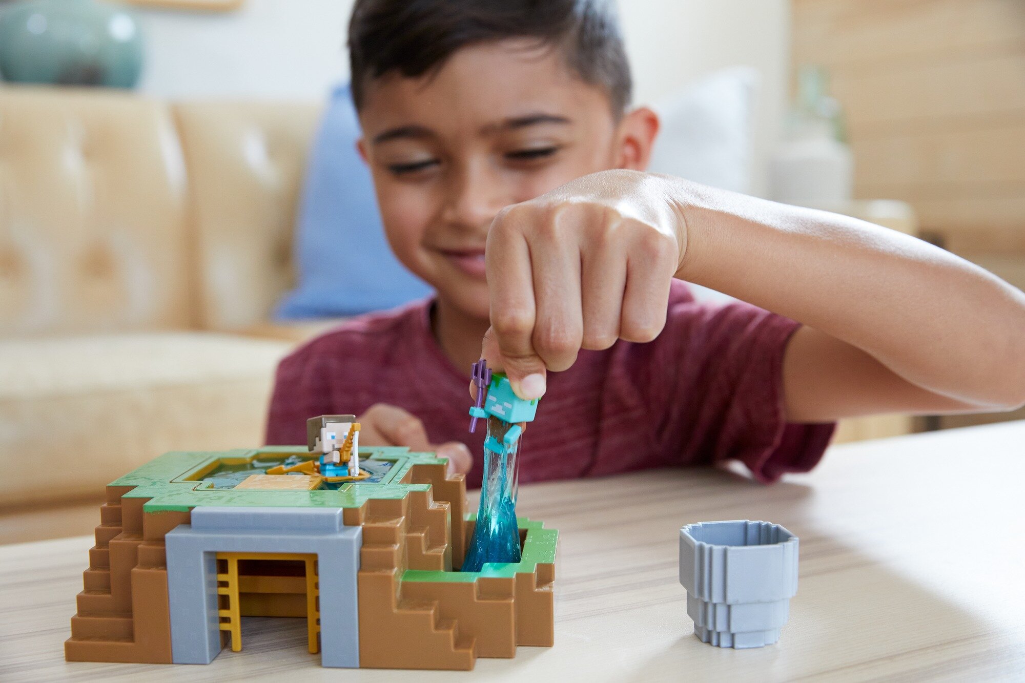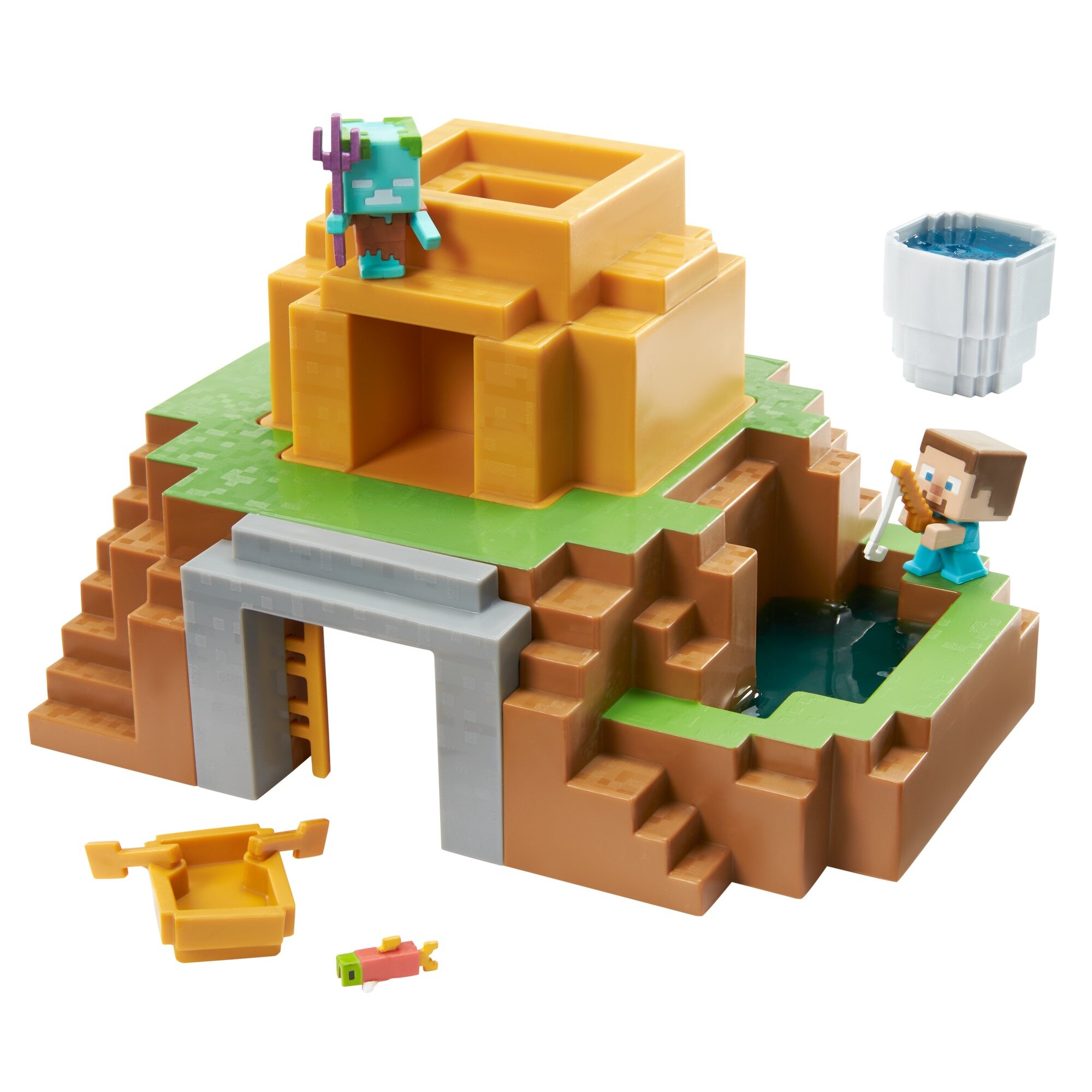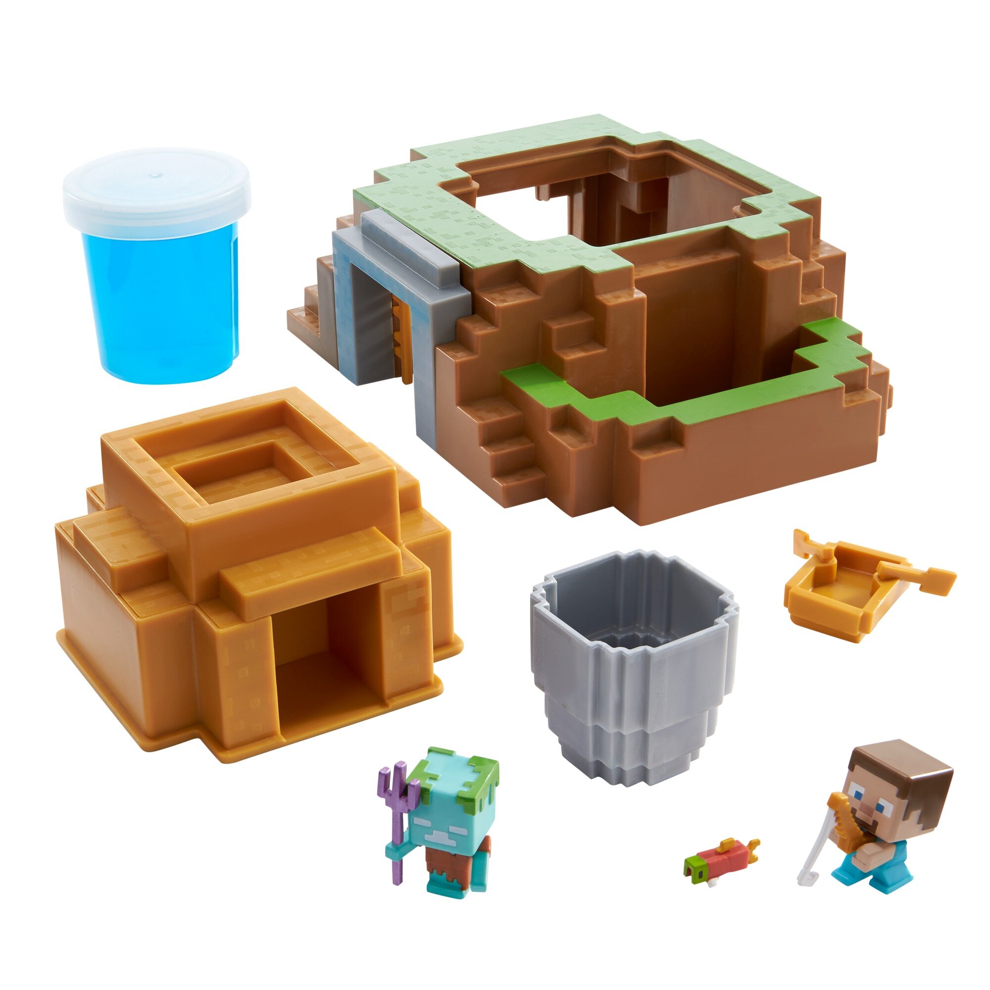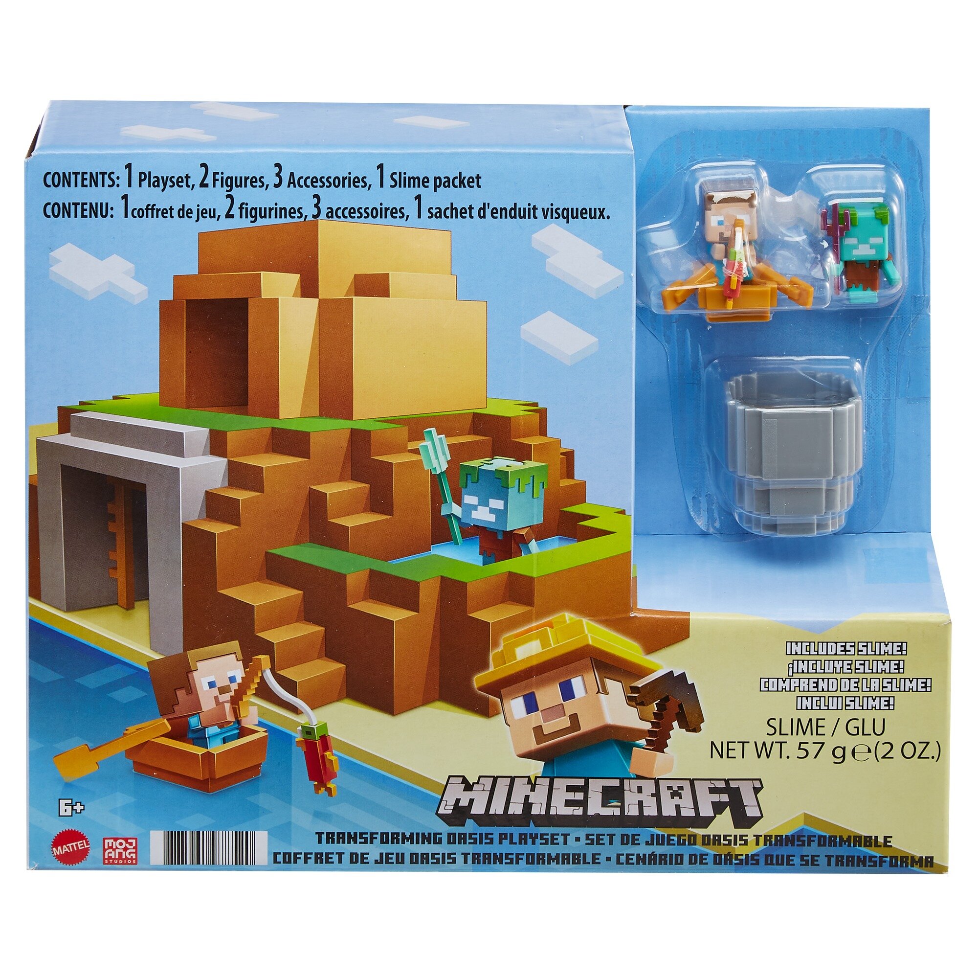 Фанати комп'ютерної гри Minecraft будуть у захваті від цього набору 2-в-1 з мініфігурками, в якому будинок можна перетворити на ставок (заливаємо слаймом) і навпаки! Комплект містить ігрову платформу, мінічовник, кошик, мініфігурки двох популярних персонажів «Стів» і «Утопленик» та слайм для ще цікавішої гри!