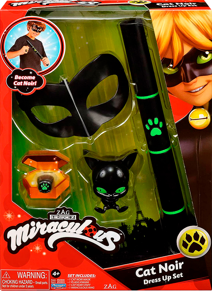В комплекті: маска, фірмовий перстень героя, фігурка квами Плагг, зброя Супер-Кота - чарівний жезл.