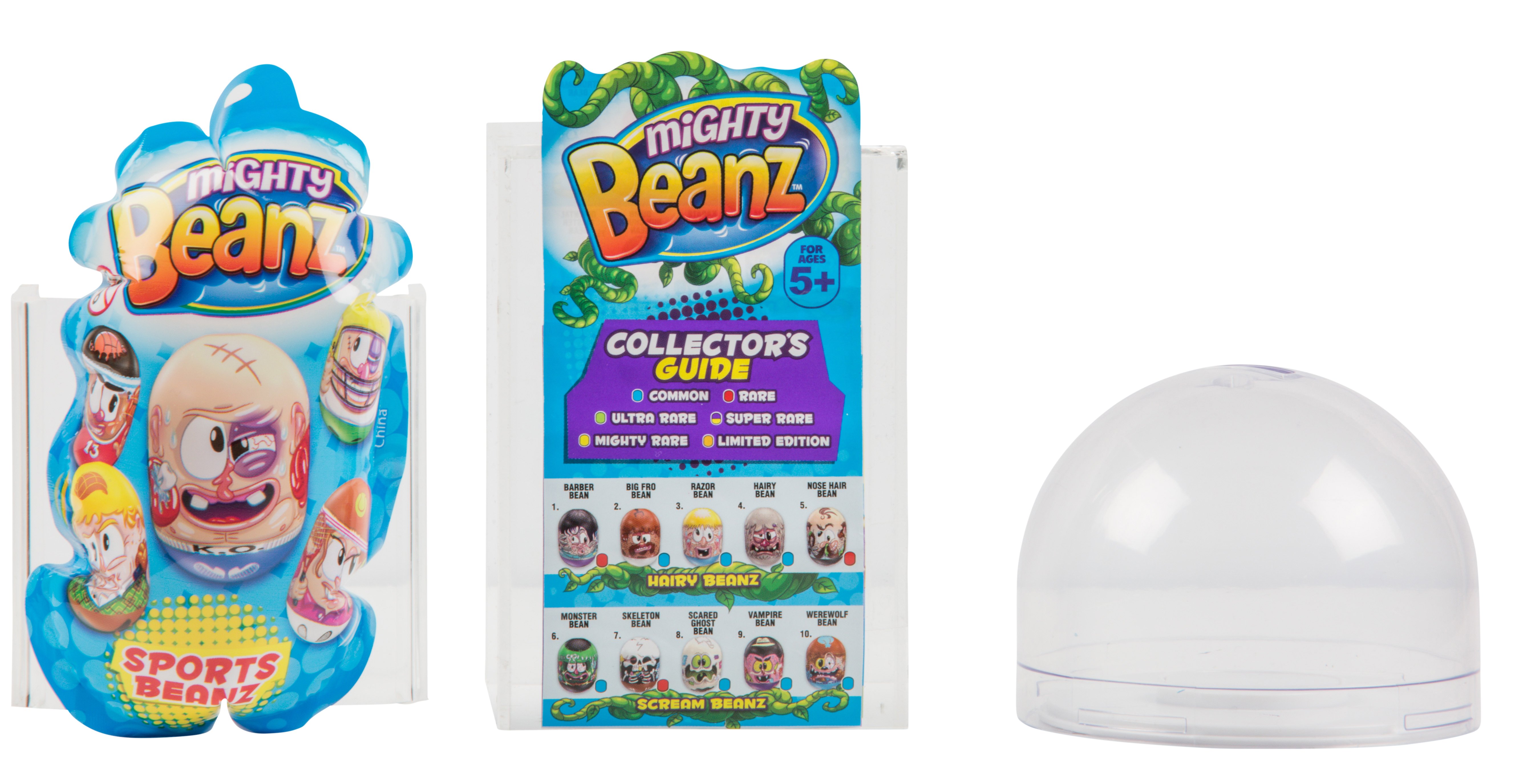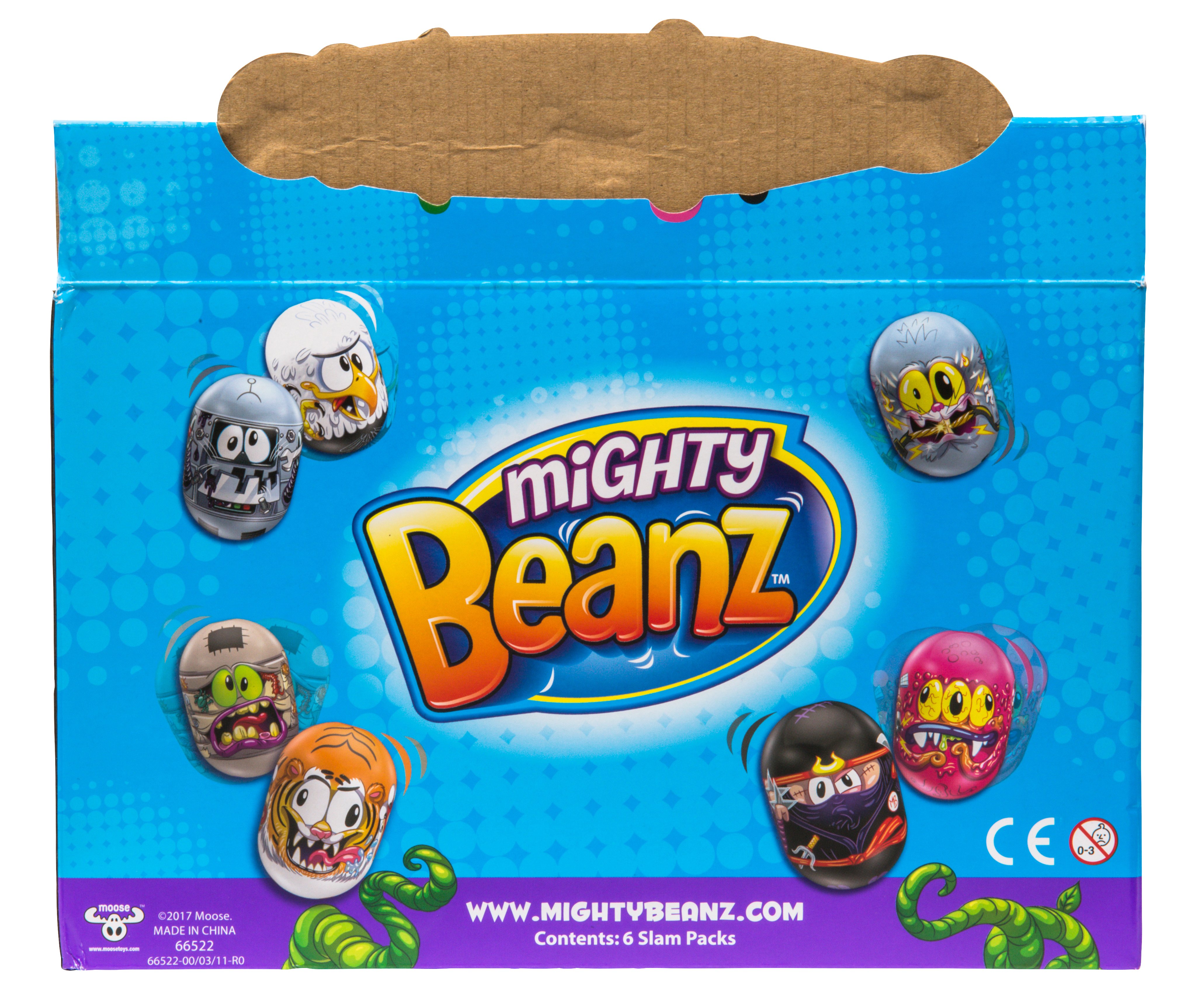 Австралійська компанія Moose Toys представляє нові, круті, абсолютно божевільні дизайни бобів і нові ігри. Mighty Beanz поділяються на тематичні команди: боби рептилії, дволикі боби, волохаті боби й багато інших. Серед них є боби звичайні, рідкісні, дуже рідкісні, суперрідкісні, ексклюзивні, а також із лімітованої серії. Їх так само вирізняє «сила», якою можна мірятися в іграх. Збери свою круту команду бобів, грай і перемагай!