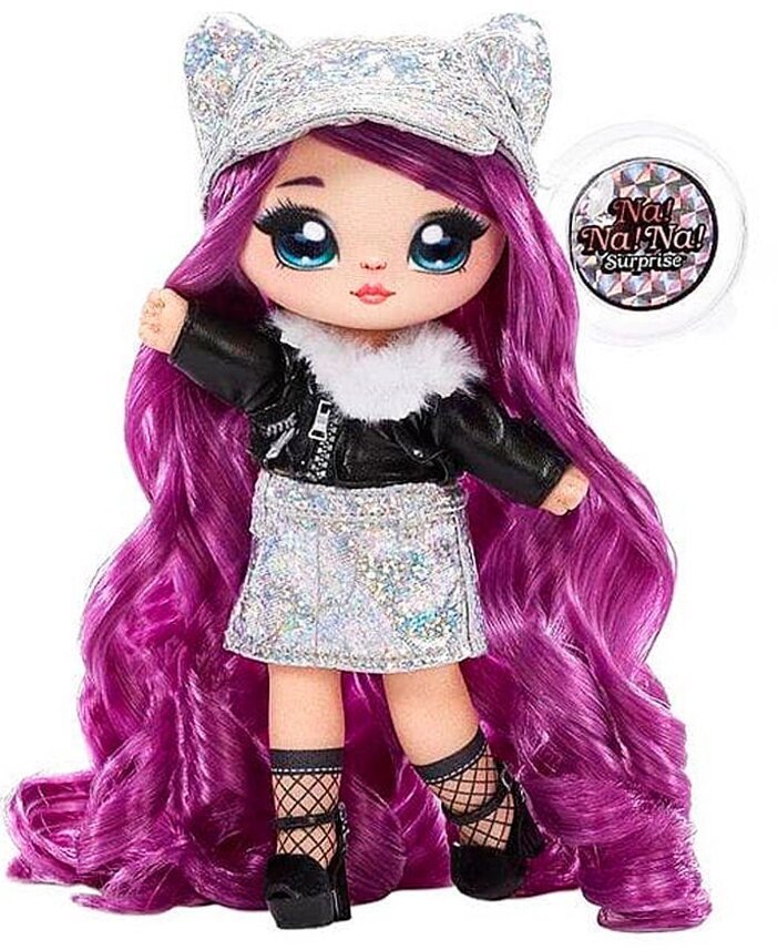 Зустрічайте нових лялечок Na! Na! Na! Surprise і серію Glam. Тепер іграшки-вихованці виготовлені з гламурної тканини з металічним ефектом і стануть чудовим стильним аксесуаром для дівчинки. Вибирайте улюблену колекційну м'яку ляльку й іграшку-улюбленця на кліпсі або зберіть усю колекцію! Кріссі Даймонд одягнена в капелюшок і спідничку, які мерехтять, як справжні діаманти. З такої ж мерехтливої тканини виготовлений її улюбленець котик.