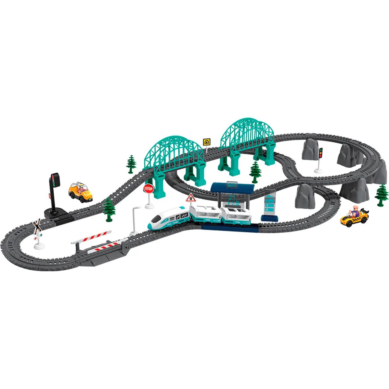 Електричні залізниці МАНДРІВНИЙ ЕКСПРЕС – це конструктори та тематичні ігрові набори одночасно. Спочатку дитина зможе побудувати залізну дорогу зі швидкісними спусками та крутими підйомами, а потім поринути в цікаву гру, вивчаючи правила дорожнього руху та взаємодію транспортних засобів і пішоходів. Реалістичні звукові ефекти руху потяга по цікавим схемам залізничних колій роблять гру захоплюючою та сприяють розвитку уяви малюка.
