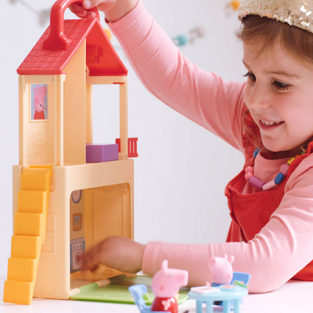 Ігровий набір Peppa Pig Розкладай та грай Будинок Пеппи — чудовий подарунок для маленьких прихильників мультфільму "Свинка Пеппа". Можна придумати безліч цікавих історій з фігурками свинки Пеппи, її брата Джорджа та аксесуарами. Будиночок має 2 поверхи з кімнатами ванни, кухні та дитячої, а ще сходи та балкон. Ви можете скласти дім і переносити його за допомогою зручної ручки.