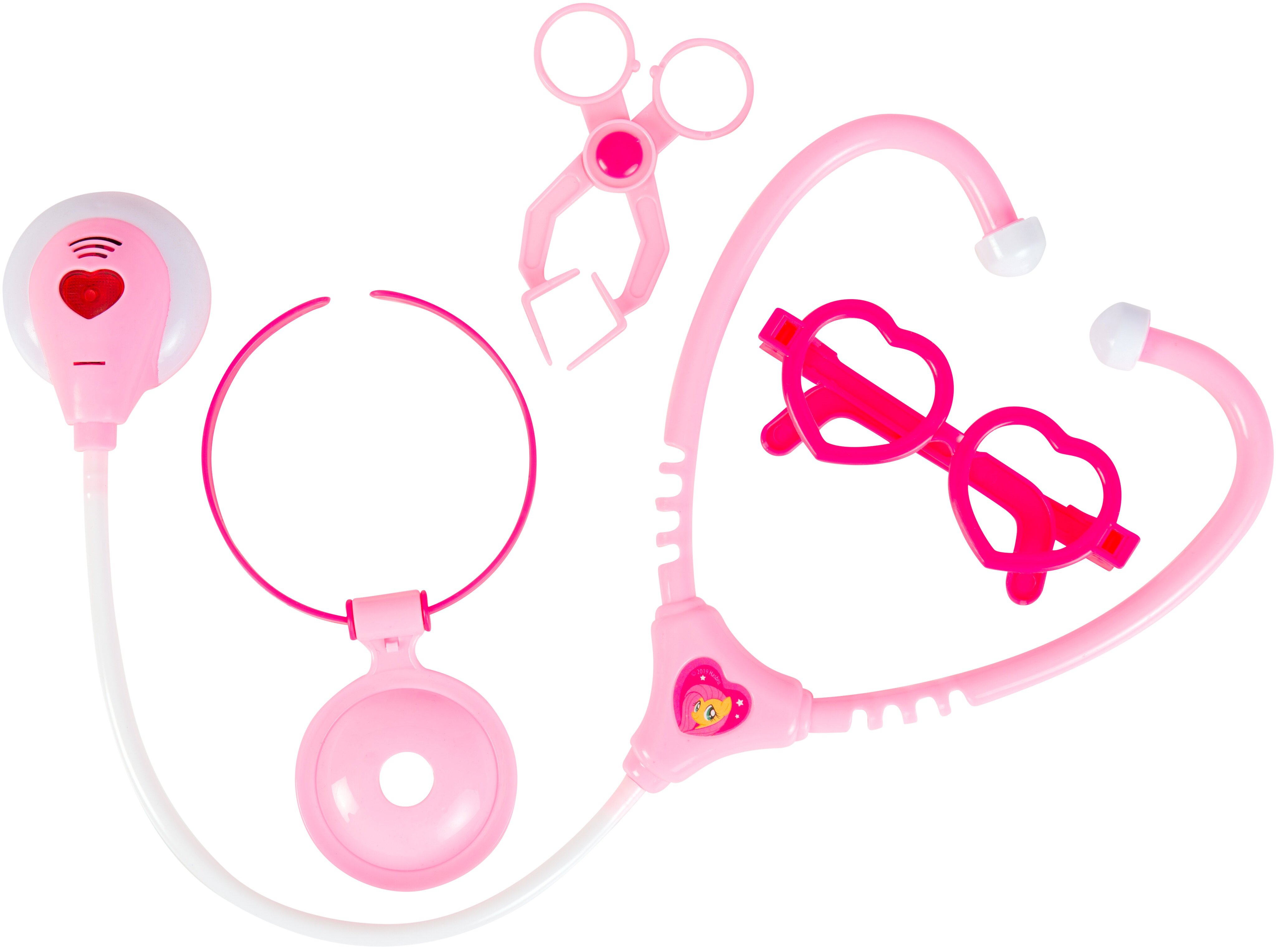 Ваша дитина лікуватиме свої іграшки, отримуючи в грі найпростіші медичні знання, розвиваючи уяву та вміння піклуватися. Стетоскоп зі світлозвуковими ефектами працює від 2 батарейок типу АG10 (входять до комплекту).