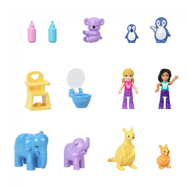 Відкрийте для себе крихітний світ Поллі Покет, наповнений великими пригодами з кенгуру! Цей набір чудово підходить для гри вдома та на вулиці завдяки своїй компактності та спеціальному ремінцю. Повісьте сумочку у формі кенгуру через плече та відправляйтесь будь-куди! Ремінець можна регулювати.