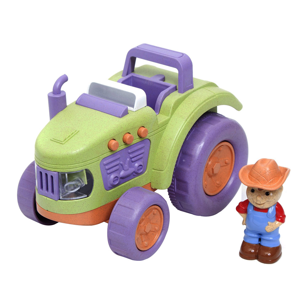 - зелений з бузковим трактор має звукові та світлові ефекти;