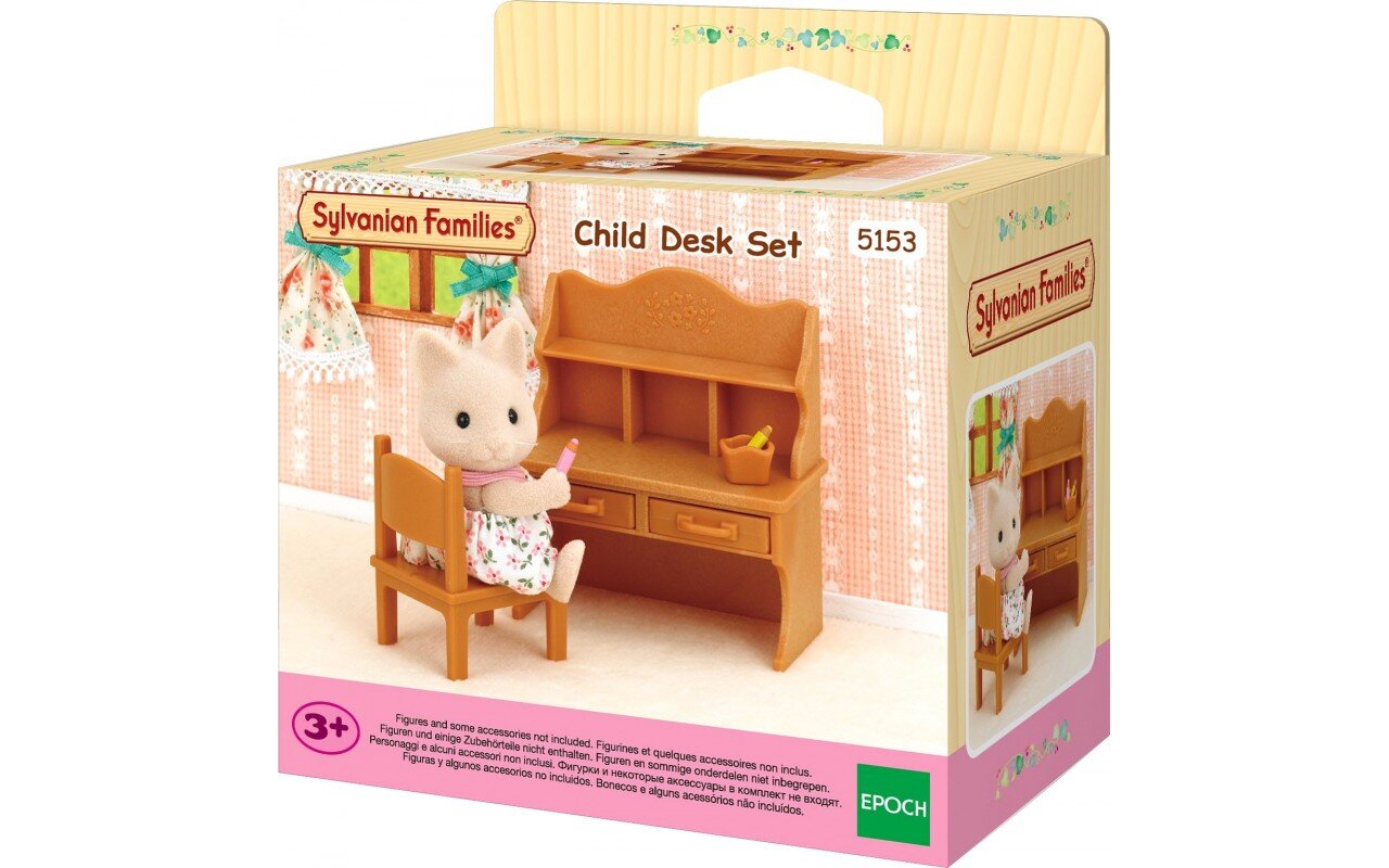 В ігровому наборі Sylvanian Families 5153 ви знайдете маленьку парту з висувними шухлядками, стілець та письмове приладдя. Лялькові меблі виготовлені з міцного, безпечного пластику з імітацією світлої деревини. Вони мають стандартні параметри, тому сумісні з усіма наборами "Сільваніан Фемелі". Облаштуйте дитячу кімнату, щоб будиночок лісової родини став затишнішим!