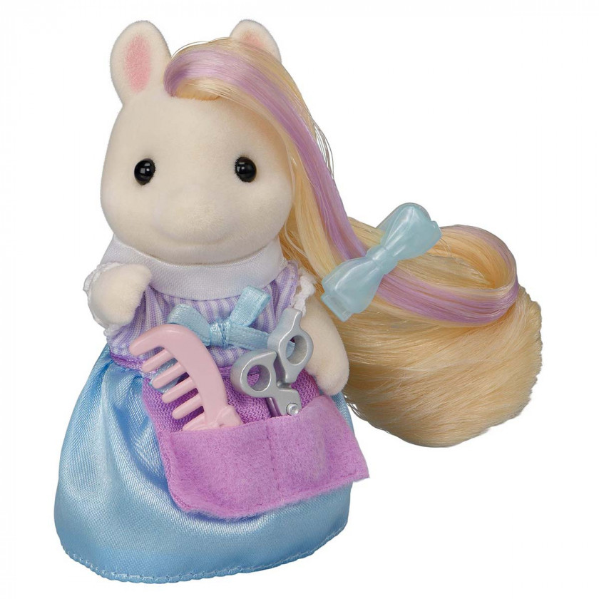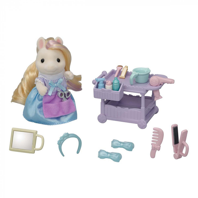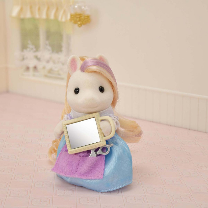 Особливості ігрового набору Sylvanian Families Стильні зачіски Поні: колекційна фігурка;комплектація: фігурка, візок, аксесуари для волосся;у фігурки рухливі лапки та голова; фігурка одягнена в знімний тканинний одяг; високий ступінь деталізації; сумісний з іншими наборами; формує основні соціальні навички у дитини.