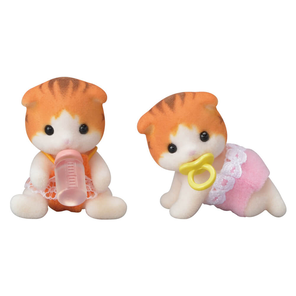 Зустрічайте чудову новинку від улюблених іграшок із серії Sylvanian Families – ігровий набір двох висловухих кошенят-двійнят, виготовлених дуже реалістично. У наборі малюк знайде двох кошенят: кішечку Метт і кошеня Клена. Іграшки виготовлені з безпечного пластику, покритого приємним на дотик флоком із ретельно промальованими елементами.
