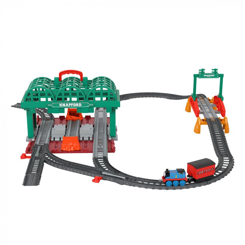 Пригоди улюбленого дітьми паровозика Томаса тривають в Ігровому наборі Thomas&Friends Залізнична станція Кнепфорд. Паровозик Томас готується до пасажирських перевезень і нових пригод. Побудуйте для нього і його друзів справжню залізничну станцію з будівельних елементів, підведіть до неї рейки і причепіть пасажирський вагон до паровоза. Гра з набором розвиває уяву дитини, знайомить її з миром та влаштуванням залізниць, пасажирських вокзалів і розширює словниковий запас.