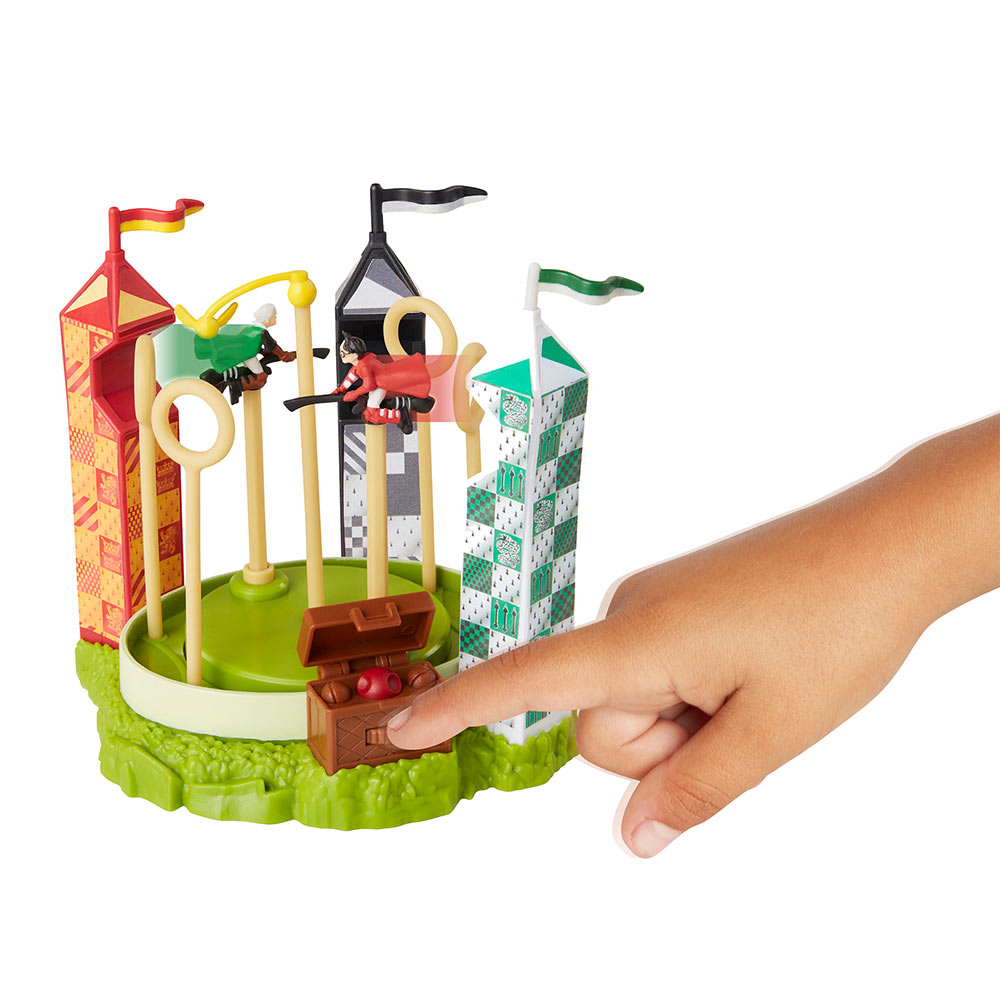 Поринути у світ "Гаррі Поттера" можна з ігровим набором від Wizarding world за мотивами "Поттеріани" – Арена для квідичу. Він має безліч секретів. Наприклад, поле арени рухається, якщо обертати "шестірню" на ящику з м'ячами, а разом з ними, 2 гравця на полі намагаються зловити Снітч. А ще можна відкрити ящик з м'ячами – Квафел, Бладжера обертаються всередині, ніби хочуть вирватися назовні. Арену ви можете прикрасити самостійно, вибравши одну із веж факультетів (Ґрифіндор, Слизерін або Рейвенкло). Втілюй сюжети з фільму або вигадуй нові, розвиваючи свою фантазію і уяву.