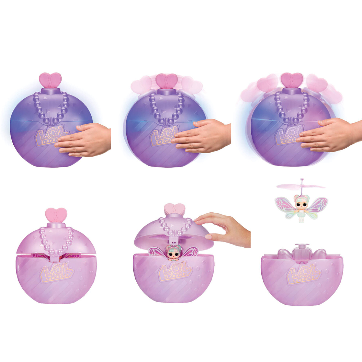 Магічна кулька: доторкніться до кулі або потріть її тричі, і вона буде кожного разу світитися, трястися та гойдатися, - це триває допоки кулька не привідкриється. Відкрийте кульку та почекайте декілька секунд, поки лялечка злетить.