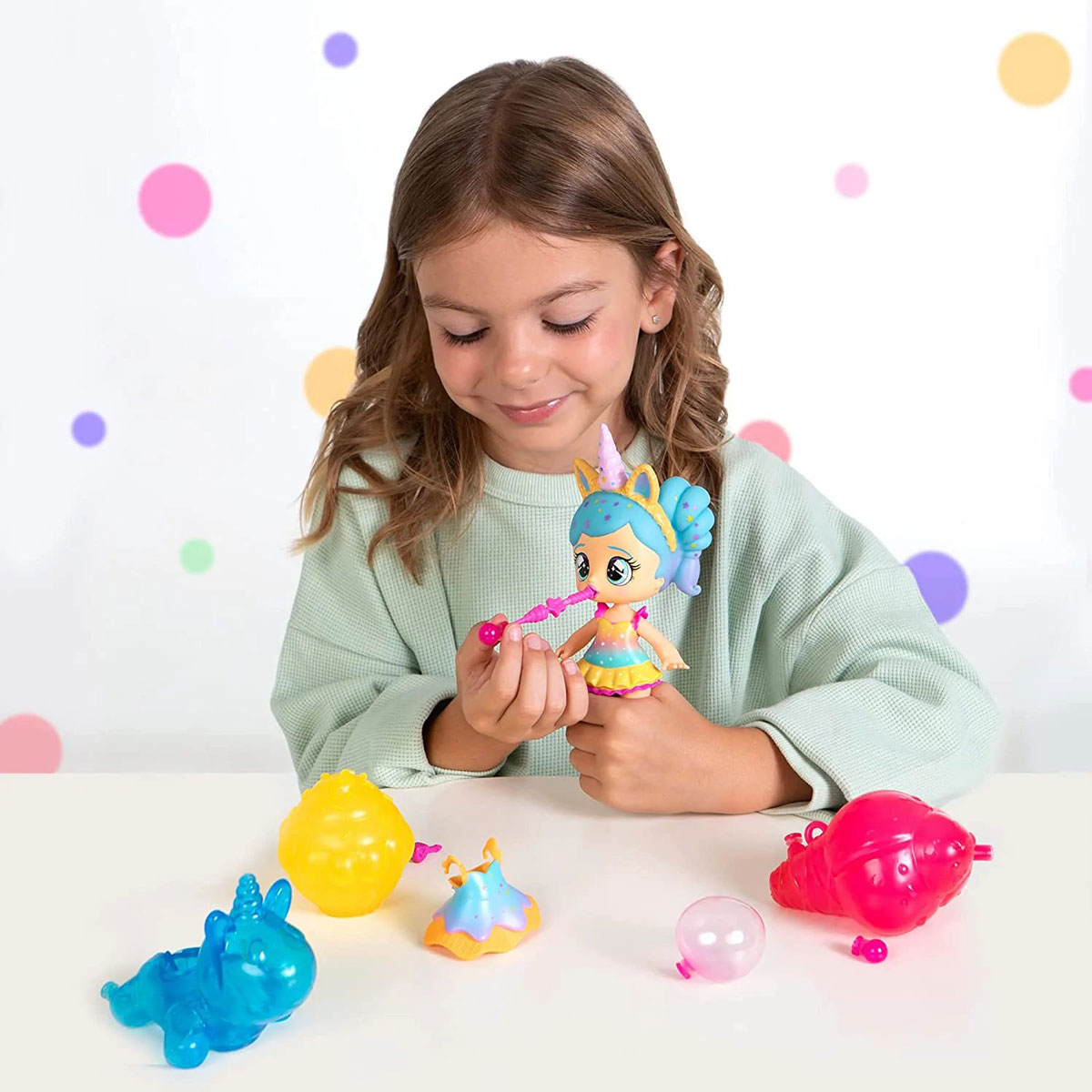 У наборі з лялькою є аксесуари та кульки, які лялечка може надувати! Необхідно вставити паличку-трубочку однією стороною в рот ляльки, а до іншої сторони прикріпити одну з кульок. Здавлюйте голову лялечки з двох сторін, і дивіться, як надує кулька! Просто неймовірно! У кульок незвичайна та кумедна форма. Зберіть їх усі!