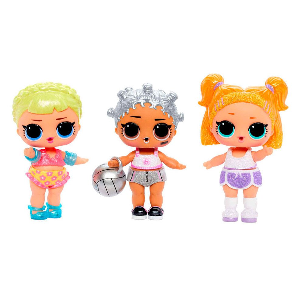 В комплекті: Куля, що може бути сумочкою, а також стендом для ляльки (тепер зі спеціальним отвором для кріплення медалі). Стікер-ребус. Медаль. Пляшечка. 2 спортивні аксесуари для ляльки. Взуття для ляльки. Одяг для ляльки. Блискуча лялечка-спортсменка L.O.L. Surprise.