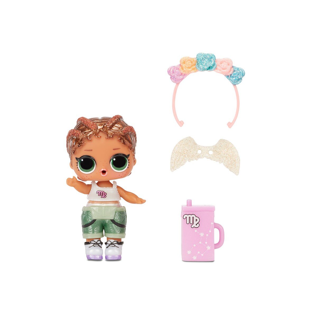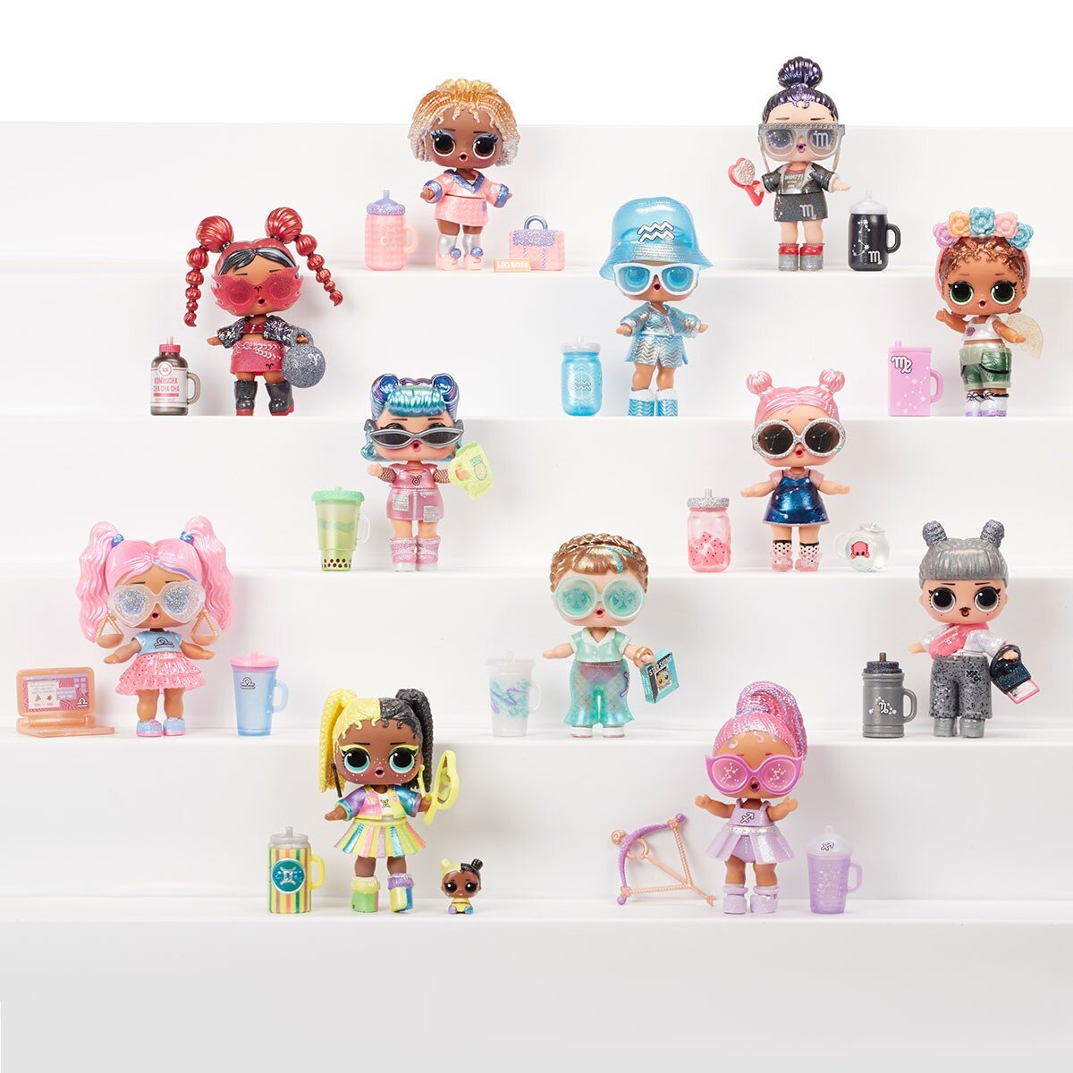 В комплекті ви знайдете: Дивовижну подарункову коробку. Стикер-ребус. Пляшечку для ляльки. 2 аксесуари для ляльки. Взуття для ляльки. Одяг для ляльки. Лялечка L.O.L. Surprise в образі одного зі знаків зодіаку. Лист колекціонера.