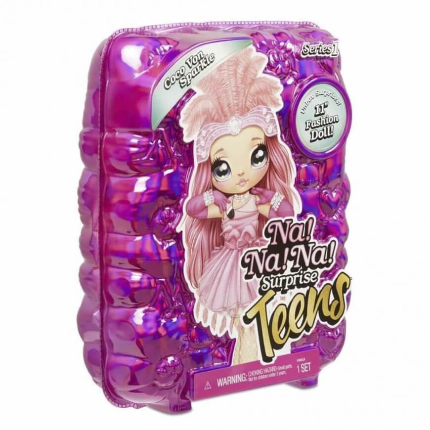 Зустрічайте нову серію ігрових наборів Na! Na! Na! Surprise! "Teens". Ці ляльки для дівчаток відносяться до fashion dolls. Вони стали вищими та рухливішими! З кожною лялькою в наборі йдуть модні аксесуари, які потрібно буде розпакувати за допомогою пакетика з конфетті. Ця особливість дозволяє перетворити просте відкриття упаковки в справжнє свято! Ще одна особливість, яка зробить гру з цими ляльками цікавішою - знімні головні убори. Тепер їх можна приміряти і іншим Teens! Рекомендовано для дітей у віці від 3 років.