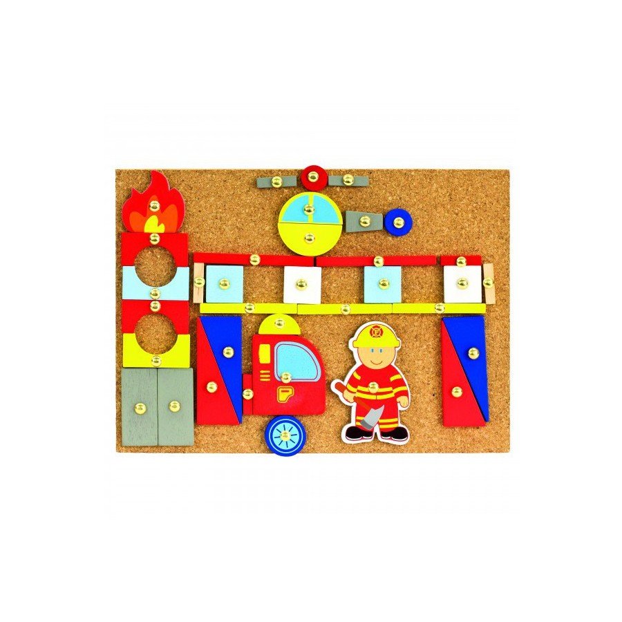 Гра розвиває логічне мислення, дрібну моторику, пам'ять і увагу. В комплекті: 1 молоток, 1 пробковая основа, 78 дерев'яних деталей, 80 цвяхів, 8 паперових фігур. Кількість елементів : 168 шт.
