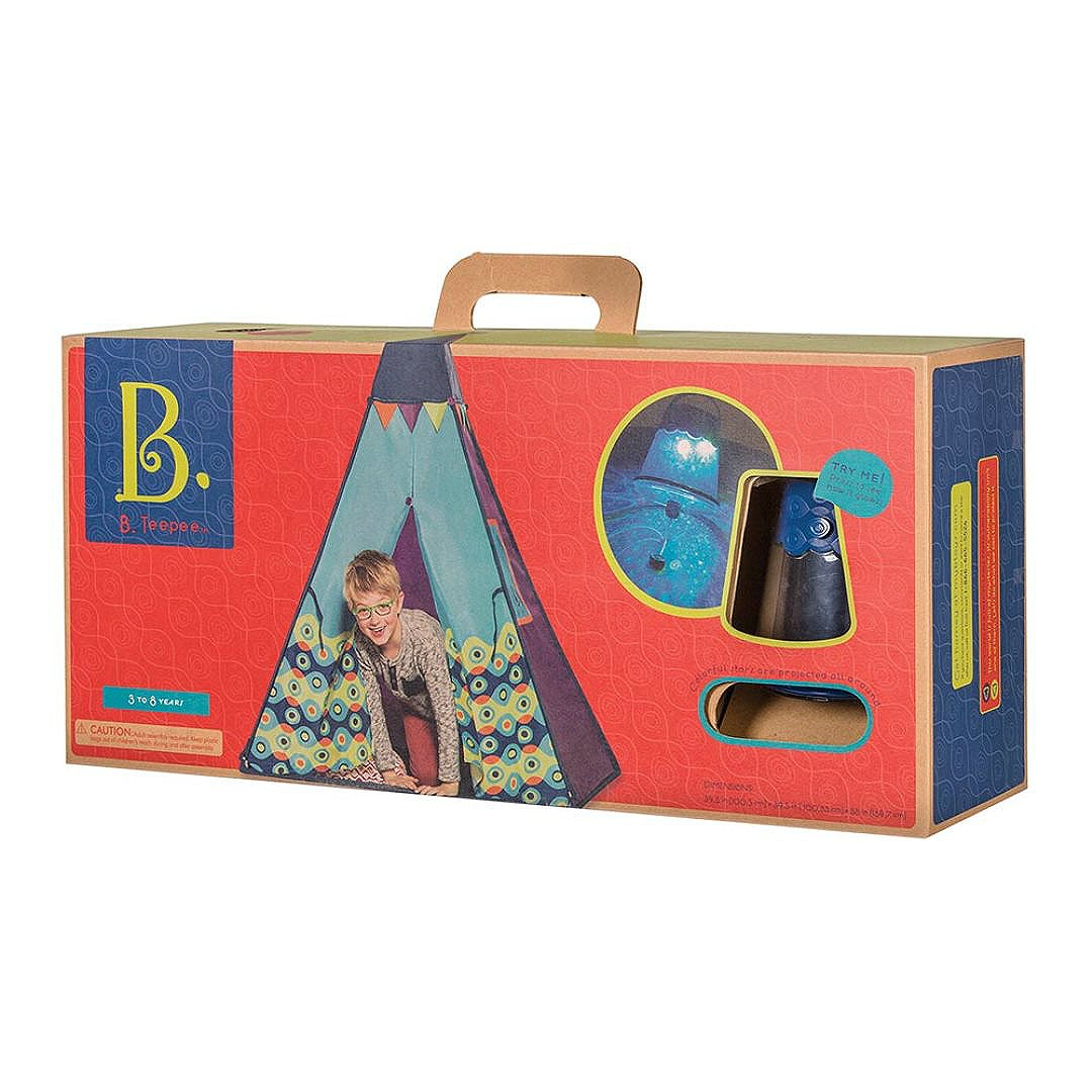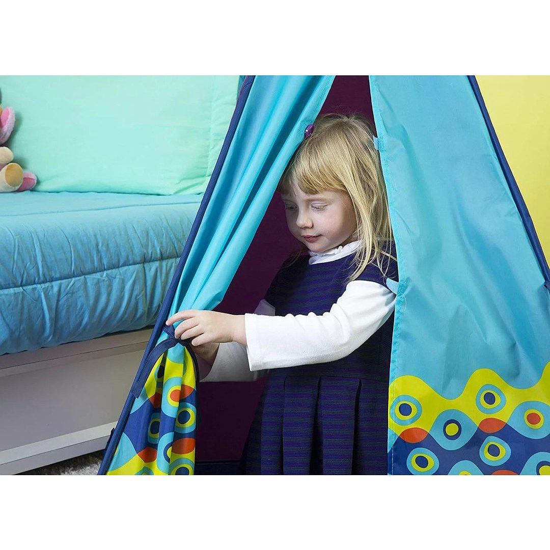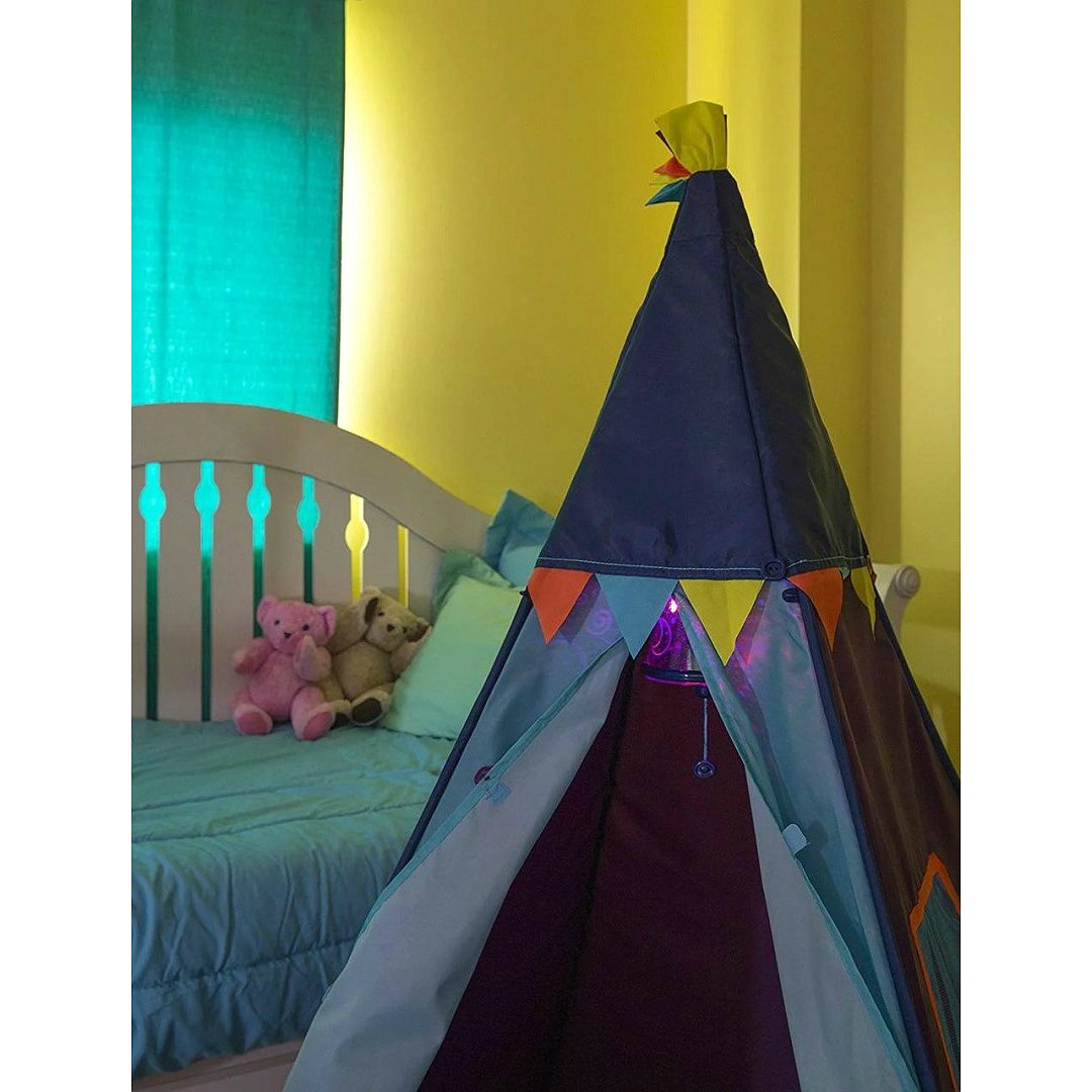 • Ігровий намет-вігвам Battat Типи - ідеальне місце для ігор і розваг дітей. Чарівне світлове шоу з проекцією зірок зробить ігри ще більше захоплюючими. Намет-вігвам чорничного кольору з прекрасними синьо-фіолетовими візерунками і кольорами, натхненними подорожами по світу. Особливості виробу: гнучка рама; міцний пластиковий каркас; легке транспортування, зручне зберігання; вбудований нічний світильник на даху, що проектує тепле світіння зірок на стіни; міцний пластиковий каркас.