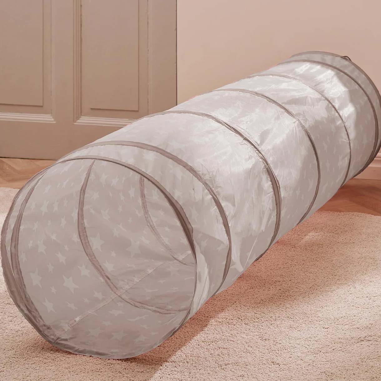 Ігровий тунель STAR від Kid's Concept — чудове доповнення для дитячих ігор, яке стимулює активний рух та розвиток фантазії. Виготовлений із міцного та безпечного текстилю, він легко складається та розкладається, що робить його зручним для зберігання і транспортування. Завдяки приємному дизайну та нейтральним кольорам тунель ідеально впишеться в будь-який інтер’єр.