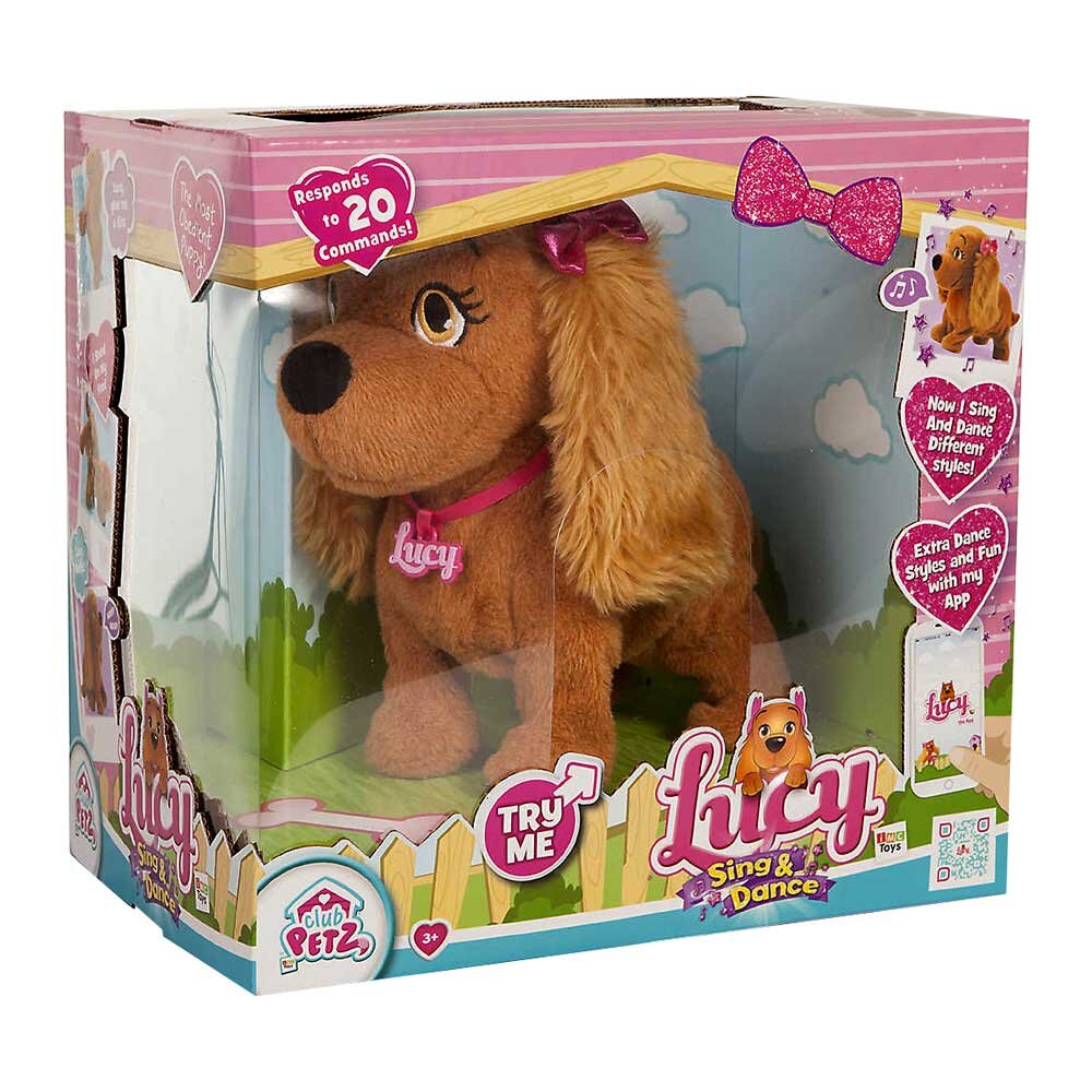 Інтерактивна іграшка IMC toys Club petz Собачка Люсі - чудовий подарунок для маленьких любительок собак! Люсі стане справжнім другом, з яким завжди весело! Собачка вміє виконувати цілих 20 команд. Серед них, як стандартні «сидіти», «служити», «лежати», «голос», так і зовсім незвичайні - «танцювати»,«співати» та «аплодувати». Тож Люсі зможе підспівати запальній мелодії, станцювати хіп-хоп або балет, а також послати своїй хазяйці повітряний поцілунок!