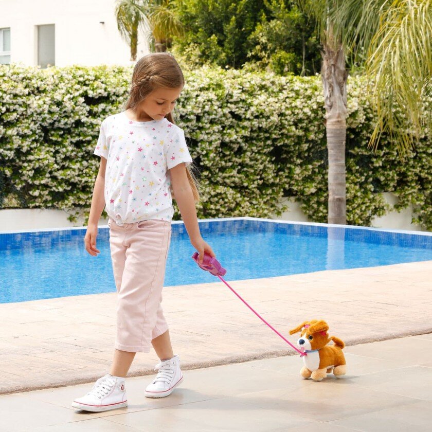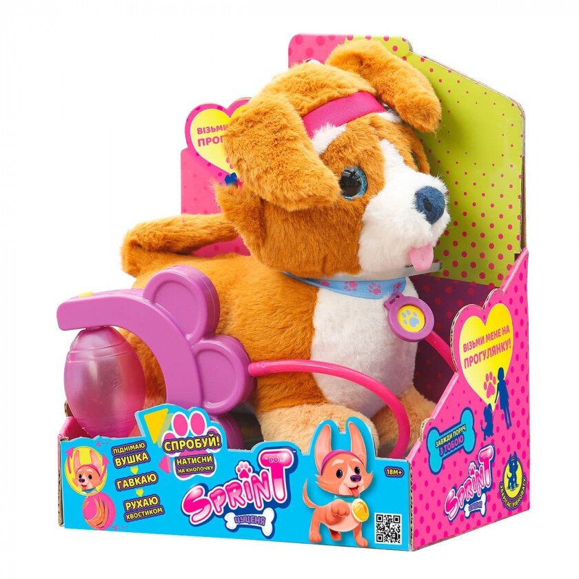 Інтерактивна іграшка Sprint Цуценя на прогулянці з поводком – це веселий друг, який скрізь йтиме за вами! На лапках цуценяти є спеціальні сфери, які прекрасно крутяться і дозволяють улюбленцеві швидко бігати і зберігати рівновагу. Щоб собачка рухала хвостиком і вушками – просто стискайте ручку поводка. А щоб почути звуки, треба натиснути кнопку на ручці поводка. Найголовніше, що усередині самої іграшки немає ніякої електроніки, тому вона така м'яка і пухнаста і просто створена для обіймів!