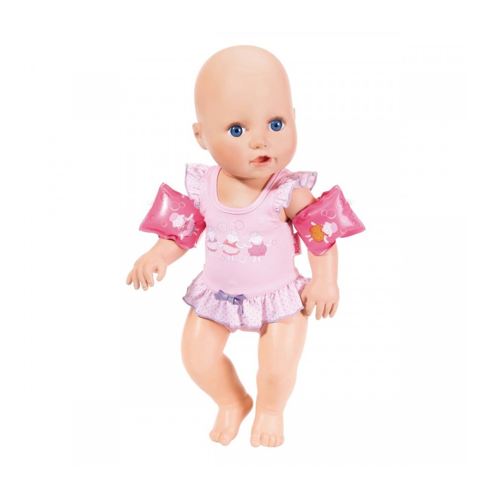 Лялька BABY ANNABELL так хоче навчитися плавати, але без твоєї допомоги їй не обійтися! Візьми пупса з собою у ванну і весело проведи час. Як тільки Анабель торкнеться води, її ніжки почнуть рухатися. Якщо перевернути її на спинку, лялька буде вести себе як справжній малюк: м'яко притримуй її за головку і підбадьорюй в процесі навчання. Не забудь одягнути спеціальні нарукавники: ANNABELL ще дуже погано тримається на воді! Після купання витри лялечку м'яким рушником і висуши її милий рожевий купальник.