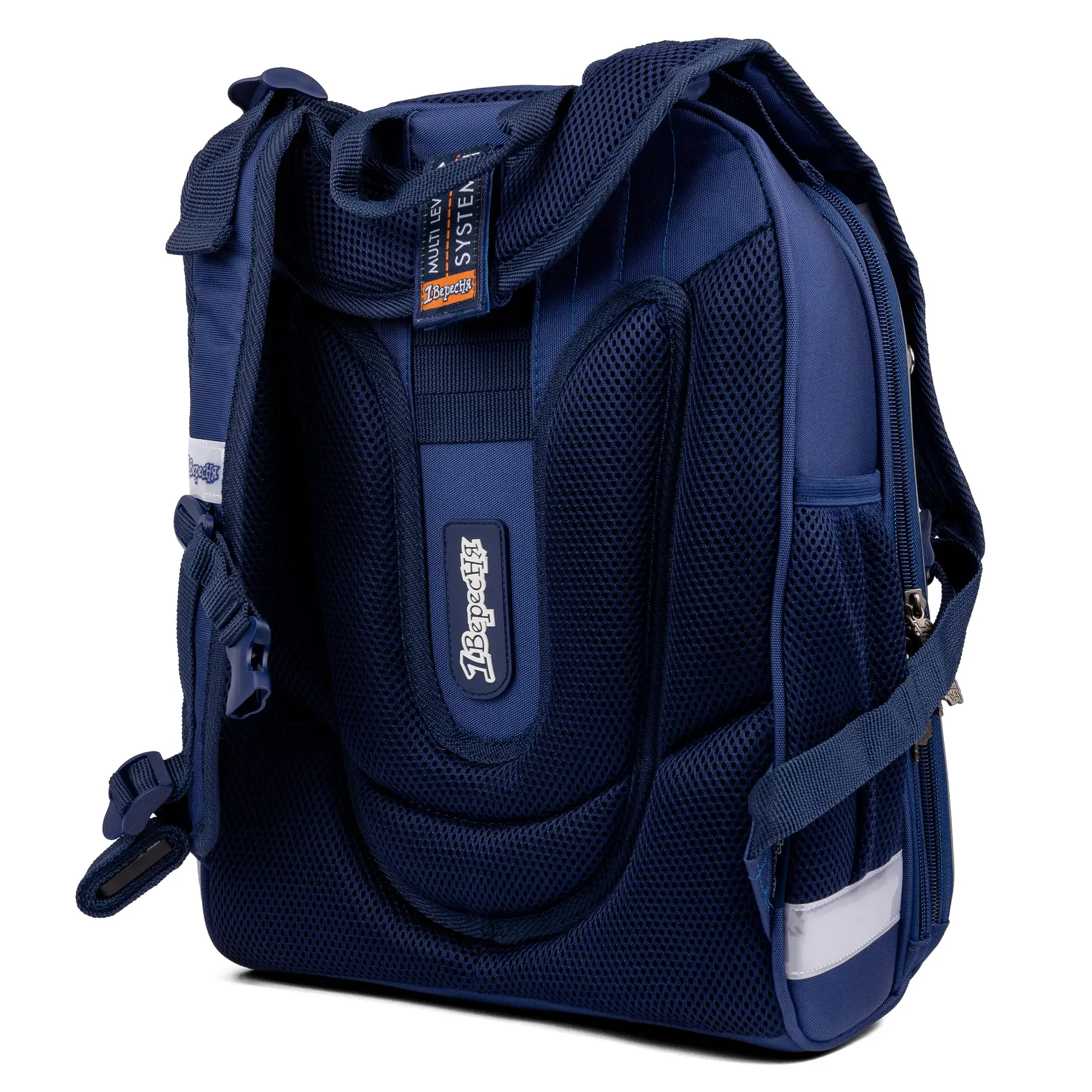 Щільний жорсткокаркасний рюкзак на два відділення. Передня панель виконана з щільного EVA-матеріалу, який не деформується при легкому натисканні, зберігаючи форму навіть при нерівномірному завантаженні рюкзака. нанесено цифровий друк. Рельєфна ортопедична спинка з каналами для циркуляції повітря перешкоджає викривленню хребта. В основному, найбільшому, відділенні розташовані жорсткі перемички-вставки для комфортного розміщення зошитів або підручників. У передньому відділенні передбачений органайзер з кишенею для мобільного телефону, відділеннями для ручок та олівців, підвіскою для ключів. Регульовані м'які лямки дозволяють виставити максимально комфортну висоту по спині дитини. Є додаткова фіксація лямок за допомогою нагрудного ременя. Дві бічні кишені для пляшки з водою та інших особистих речей. Посилене дно із захисними накладками. Зручна ручка для перенесення. Світловідбиваючі елементи забезпечать видимість дитини в темний час доби. Компактний розмір рюкзака ідеально підходить навіть для найменших діток - він не тисне на плечі і не важкий для дитини навіть у наповненому стані. Розмір: 38 х 30 х 15 см.