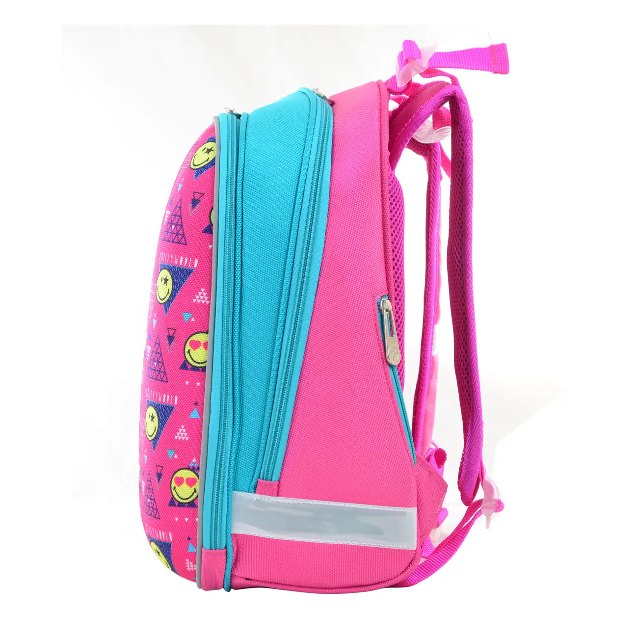 Міцний жорсткокаркасний рюкзак на два відділення. Передня панель виконана в стилі “панцир”, що не деформується при легкому натисканні та зберігає форму навіть при нерівномірному завантаженні рюкзака. “Панцир” вироблено із цупкого EVA-матеріалу. Спинка рюкзака повторює форму хребта, що запобігає його викривленню, сприяє формуванню правильної постави. Унікальна система кріплення лямок дозволяє відрегулювати максимально комфортну висоту по спині дитини. Є додаткова фiксацiя лямок завдяки нагрудному ременю. На боковій панелі, з лівого боку, мається невелика кишеня на блискавці, яка ховає кишеню-сітку. При необхідності вона витягується назовні і використовується як повноцінна кишеня для пляшки. В моделі H-12 є відділення для лептопа, органайзер для пишущих приладдя, телефону. Світловідбиваючі елементи для безпеки дитини на дорозі в темний час доби або у сутінках. Посилене дно за захисними гумовими накладками.