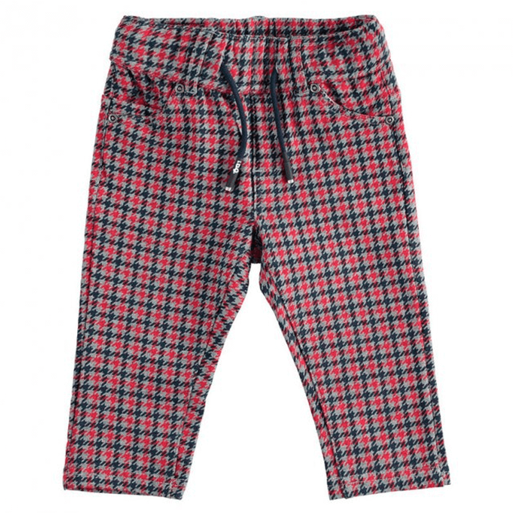 Завужені штани в клітинку виготовлені з еластичного бавовняного флісу. Спереду дві кишені з фірмовими заклепками iDO, ззаду накладні кишені. Талія регулюється вшитою в поясі гумкою і шнурком. Штани ідеально поєднуються з сорочкою, толстовкою.