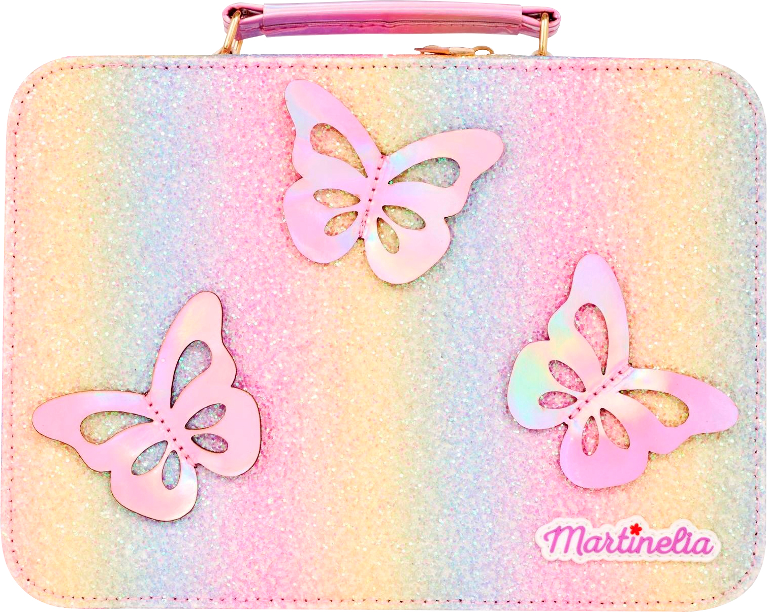 Як встояти перед кейсом з косметикою Martinelia Блискучі крила краси? Блиск, кольори веселки, 3D метелики та макіяж, багато макіяжу.