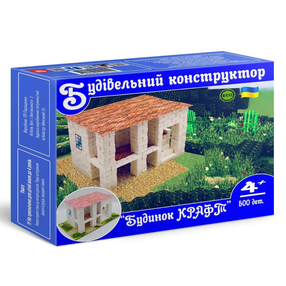 Будинок Крафт - керамічний конструктор від українського бренду "Країна Мяв", з яким дитина відчує себе справжнім будівельником. Набір містить мініатюрні цеглинки з гіпсу, елементи для складання споруди. Всього 500 деталей.