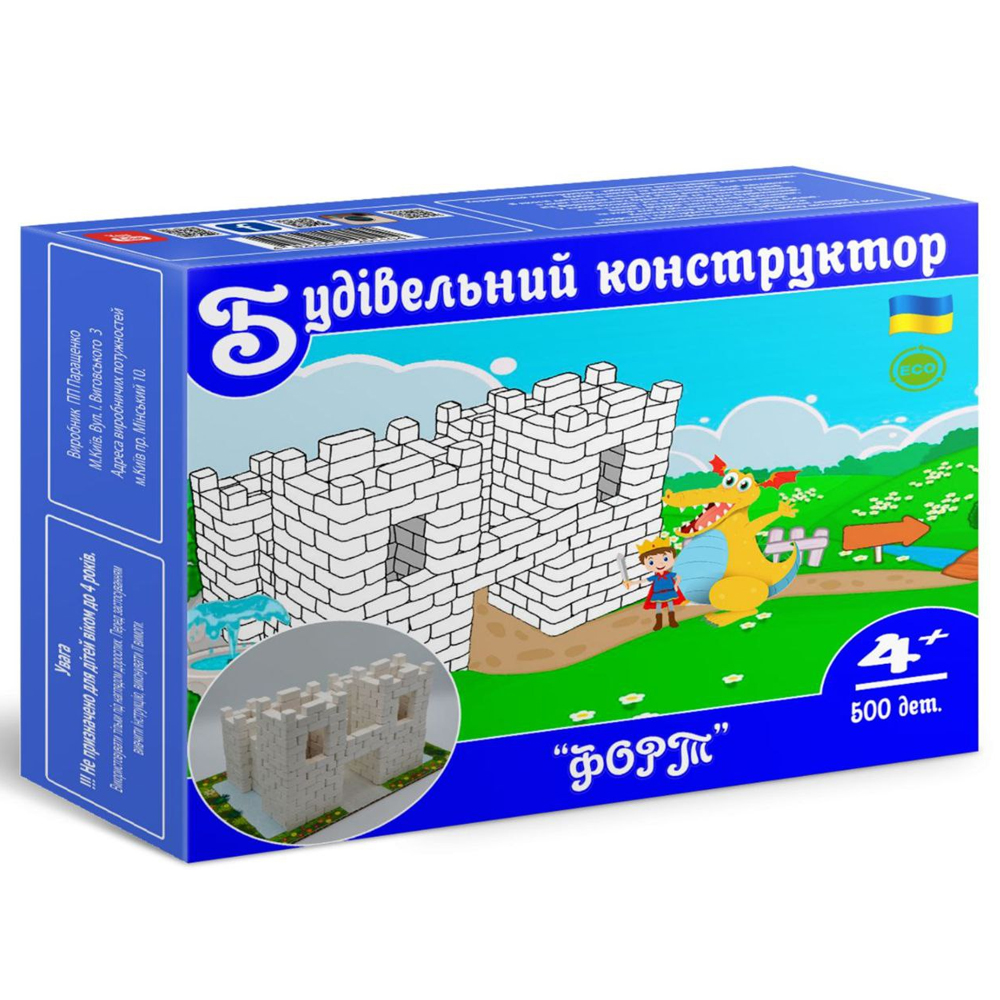 Форт - керамічний конструктор від українського бренду "Країна Мяв", з яким дитина відчує себе справжнім будівельником. Набір містить мініатюрні цеглинки з гіпсу, елементи для складання споруди. Всього 500 деталей.