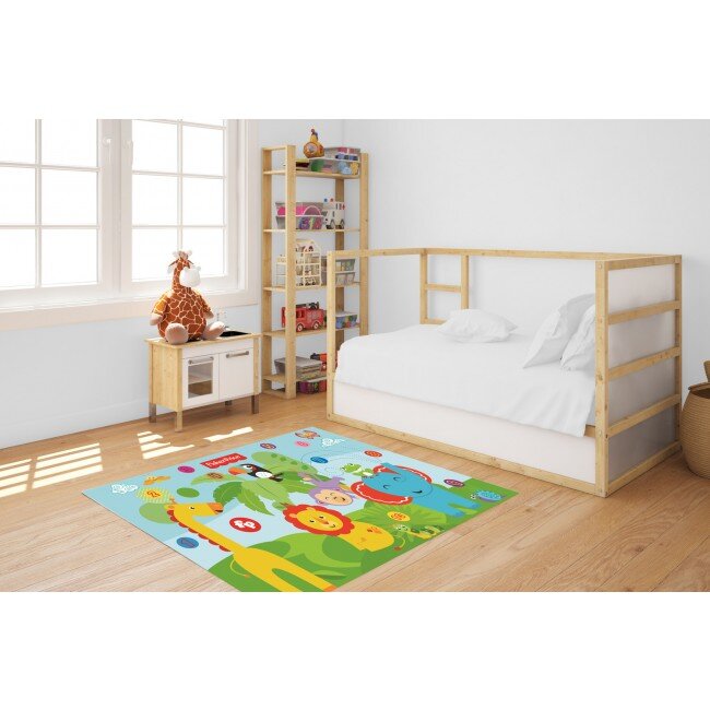 Fisher-Price Джунглі (FP-PC007) - щільний дитячий килимок з безворсового поліестеру, що не накопичує пил. Простий у догляді. Стійкий до плям, з прогумованим низом, що робить його протиковзним.