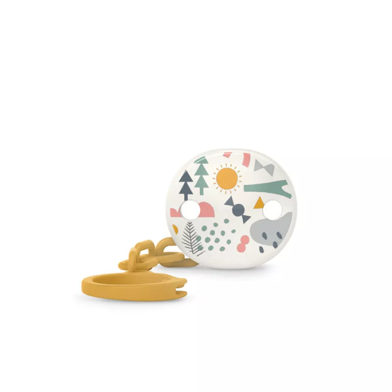 Кліпса для пустушки Suavinex A walk in the park від іспанського бренду створена для немовлят від народження. Вона легка та безпечна. Виготовлена з міцного пластику без вмісту токсичних речовин. Оснащена зажимом для фіксації аксесуару на дитячому візочку, стільчику для годування, колисці, тощо. Має яскравий дизайн. Попереджає падіння пустушки на підлогу чи землю. Допомагає підтримувати її в чистоті.