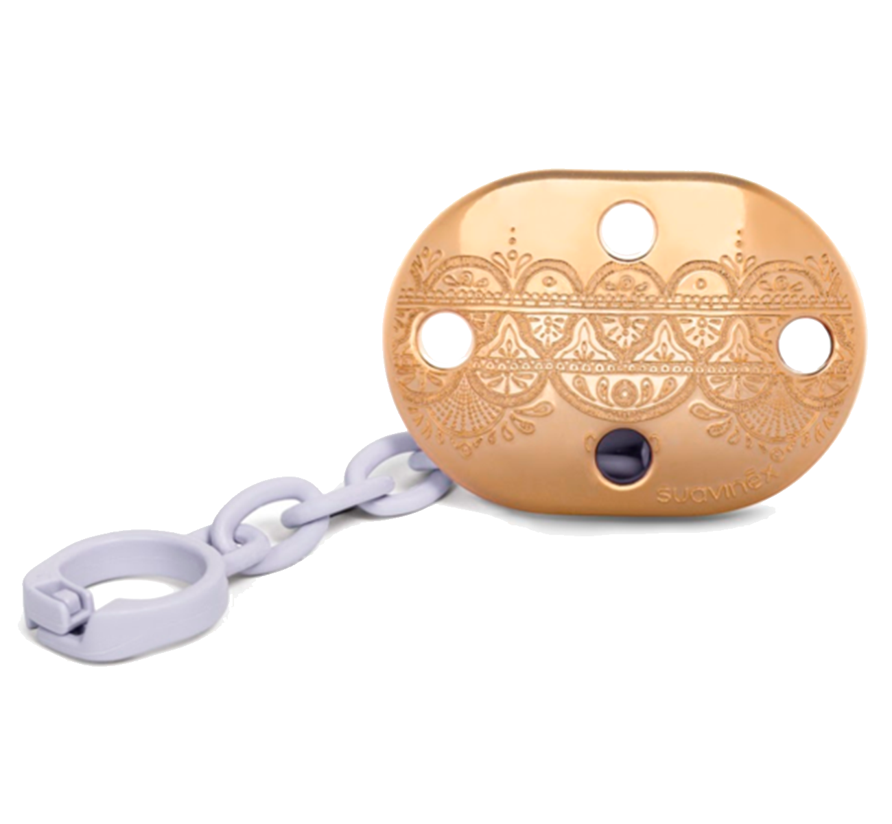 Тримач Suavinex Couture допоможе утримувати пустушку від падіння на підлогу або на землю під час прогулянки. Аксесуар створений для дітей від народження до 2-х років.