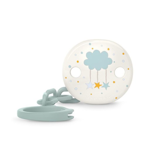 Кліпса для пустушки Suavinex Dreams від іспанського бренду створена для немовлят від народження. Вона легка та безпечна. Виготовлена з міцного пластику без вмісту токсичних речовин. Оснащена зажимом для фіксації аксесуару на дитячому візочку, стільчику для годування, колисці, тощо. Має яскравий дизайн. Попереджає падіння пустушки на підлогу чи землю. Допомагає підтримувати її в чистоті.