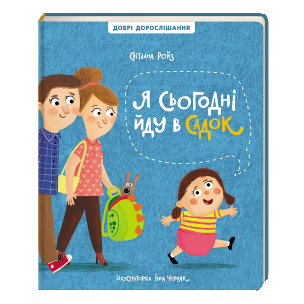 Це справжня гра-практикум, яка покликана полегшити процес підготовки та звикання до дитячого садочку. Це перше видання серії «Добрі дорослішання». Перший похід до садочку – відповідальний період, як для дитини, так і для батьків. Адаптація може тривати від півтора місяця до пів року. У книжці зібрані основні ситуації, з якими дитина зустрінеться у садочку. Також є практики, які авторка використовувала в роботі, вони зроблять процес адаптації легшим та допоможуть батькам ще більше зблизитися з малюком. Новинка «Я сьогодні йду в садок» у формі гри дає змогу «вжитися» в роль, одягаючи, переміщуючи іграшку сторінками книжки. Завдяки інтерактивній книжці дорослі разом із дитиною в ігровій формі проживають всі складні моменти, з якими родини найчастіше звертаються до авторки-психологині: розлука з батьками, переодягання, денний сон тощо. Також у книжці є багато корисних порад і практик, здатних не лише зробити адаптацію до садочка легкою та приємною, але й зблизити дорослих із малюками.
