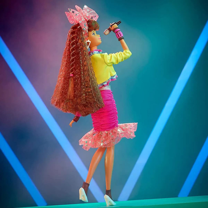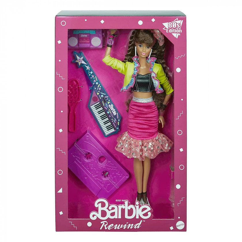 Колекційна лялька Barbie Вечірня прогулянка серії Barbie Rewind ("Ностальгія") увінчає наші улюблені образи поп-культури різних десятиліть. Вона розпочинається з випуску Barbie Rewind 80-х — ностальгічній колекції, яка присвячена улюбленим образам в стилі 80-х років. Ця лялька Barbie представлена у відповідному для вечірки образі: на ній жовта куртка і спідниця з ефектними рюшами, сітчасті капронові шкарпетки і рукавички без пальців в тон. Образ доповнюють масивні сережки, яскраво-рожеві браслети і об'ємна зачіска з пишним бантом.