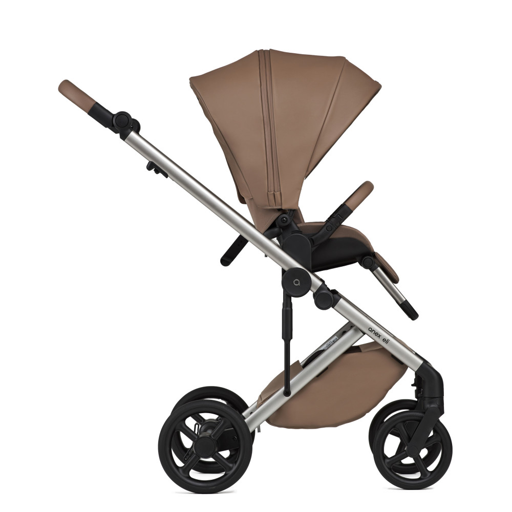 Прогулянкове сидіння Anex Eli складається в обох напрямках, дозволяючи батькам зручно переносити коляску при необхідності. Адаптери висоти включені до комплекту та забезпечують більшу гнучкість і комфорт для сімей різного зросту.