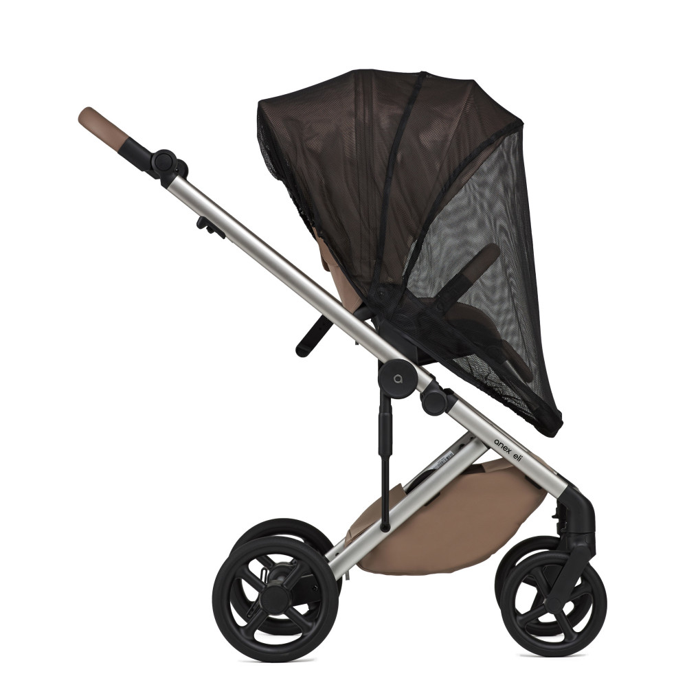 Прогулянкове сидіння Anex Eli складається в обох напрямках, дозволяючи батькам зручно переносити коляску при необхідності. Адаптери висоти включені до комплекту та забезпечують більшу гнучкість і комфорт для сімей різного зросту.