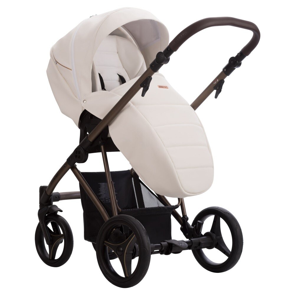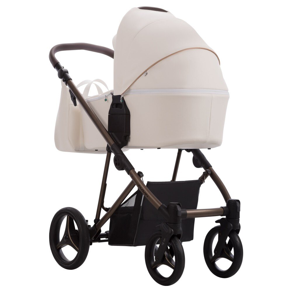 У Flavio Choco PRO кавово-коричнева рама, а салон люльки та коляски виконаний з м'якої оббивки, що забезпечує максимальний комфорт для вашої дитини, а зовні люлька та коляска обтягнуті еко-шкірою!