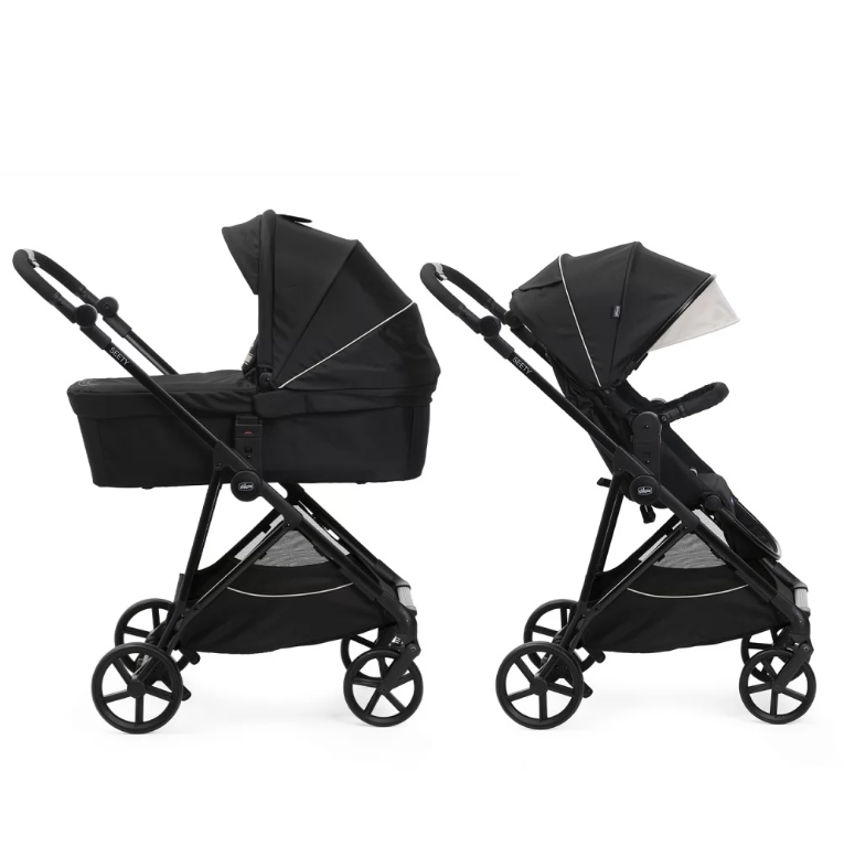 Chicco Seety – практична та функціональна коляска 2 в 1 від бренду Chicco з інтуїтивно зрозумілою системою складання та плавним ходом для пересування по бездоріжжю у будь-який сезон.