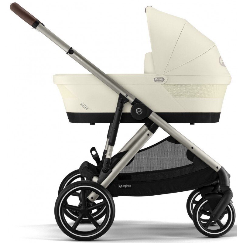Коляска Cybex Gazelle S Taupe 2 в 1 комплектується: шасі з колесами, люлька, прогулянковий блок з бампером, нижня корзина для покупок + додатковий кошик для покупок.