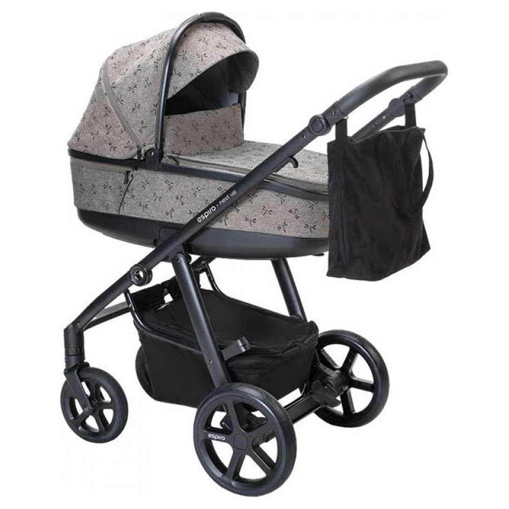 Коляска призначена для обслуговування малюків від 0 до 4 років. Одна рама і до трьох варіантів пересування. Шасі Espiro Next Up (Еспіро Некст Ап) сумісне з колискою, сидінням для прогулянок і автокріслом при наявності відповідних адаптерів.