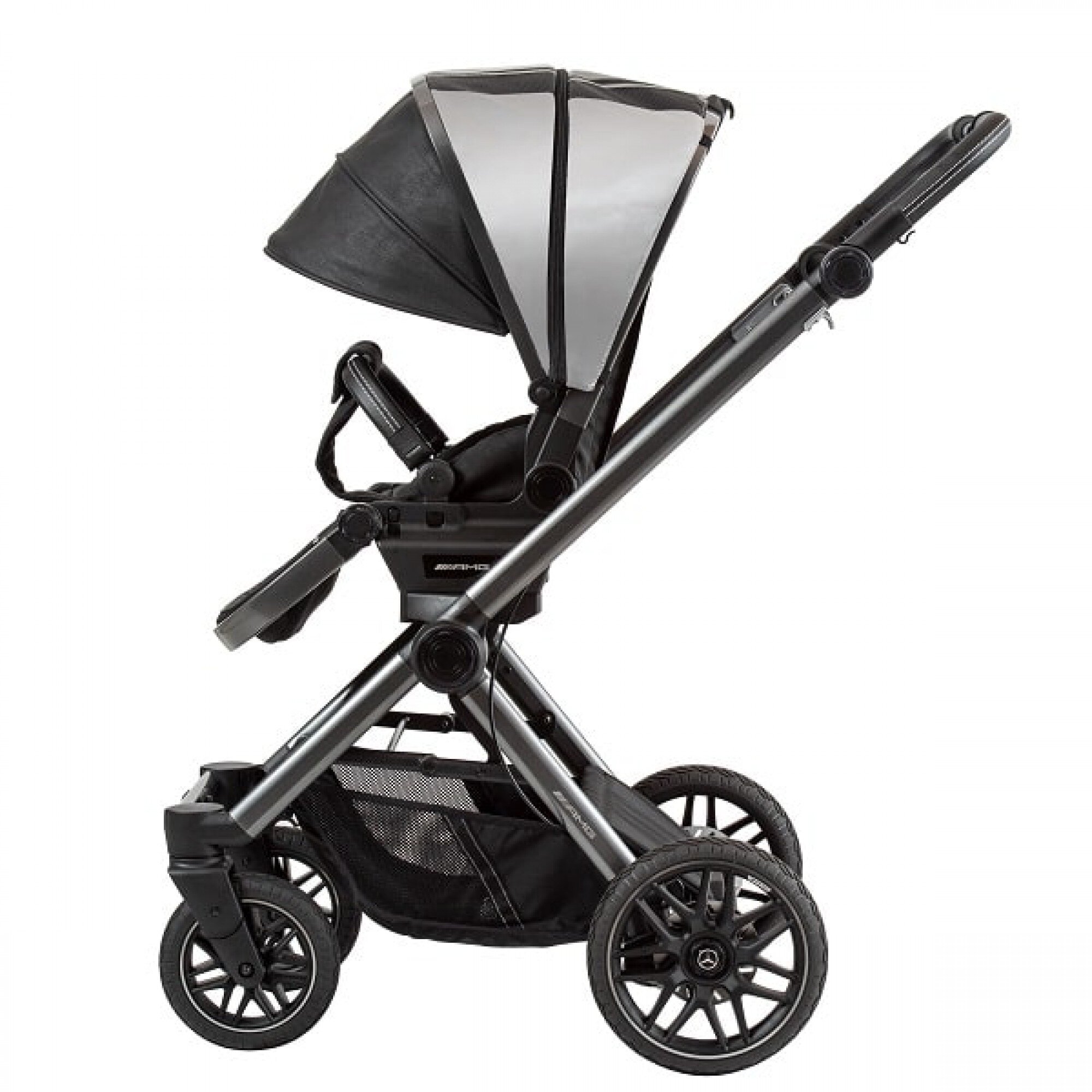 Команда дизайнерів Mercedes-Benz, Mercedes-AMG і Hartan створили унікальну коляску, яка поєднує в собі спортивність, гнучкість і максимальний комфорт водіння абсолютно особливим чином. Для цього в колясці передбачені: два види гальма (ножний і ручний); прогулянковий блок обладнаний 5-точковим ременем безпеки, а шасі – поворотними передніми колесами.