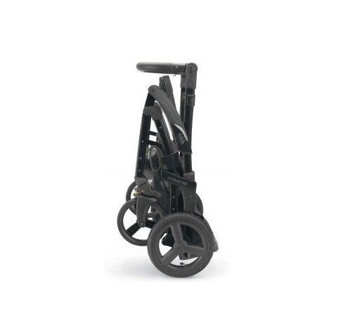 Шасі: алюмінієве шасі з м'якою, регульованою по висоті, ергономічною ручкою обтянутою екошкірою; великі задні надувні колеса, та передні поворотні колеса, підвищують маневреність коляски; з'ємні задні колеса; задні стояночні гальма; м'яка задня і передня підвіски; стійко стоїть в складеному вигляді (складається книжкою); просторий кошик для покупок; ручка на рамі для зручності перенесення.