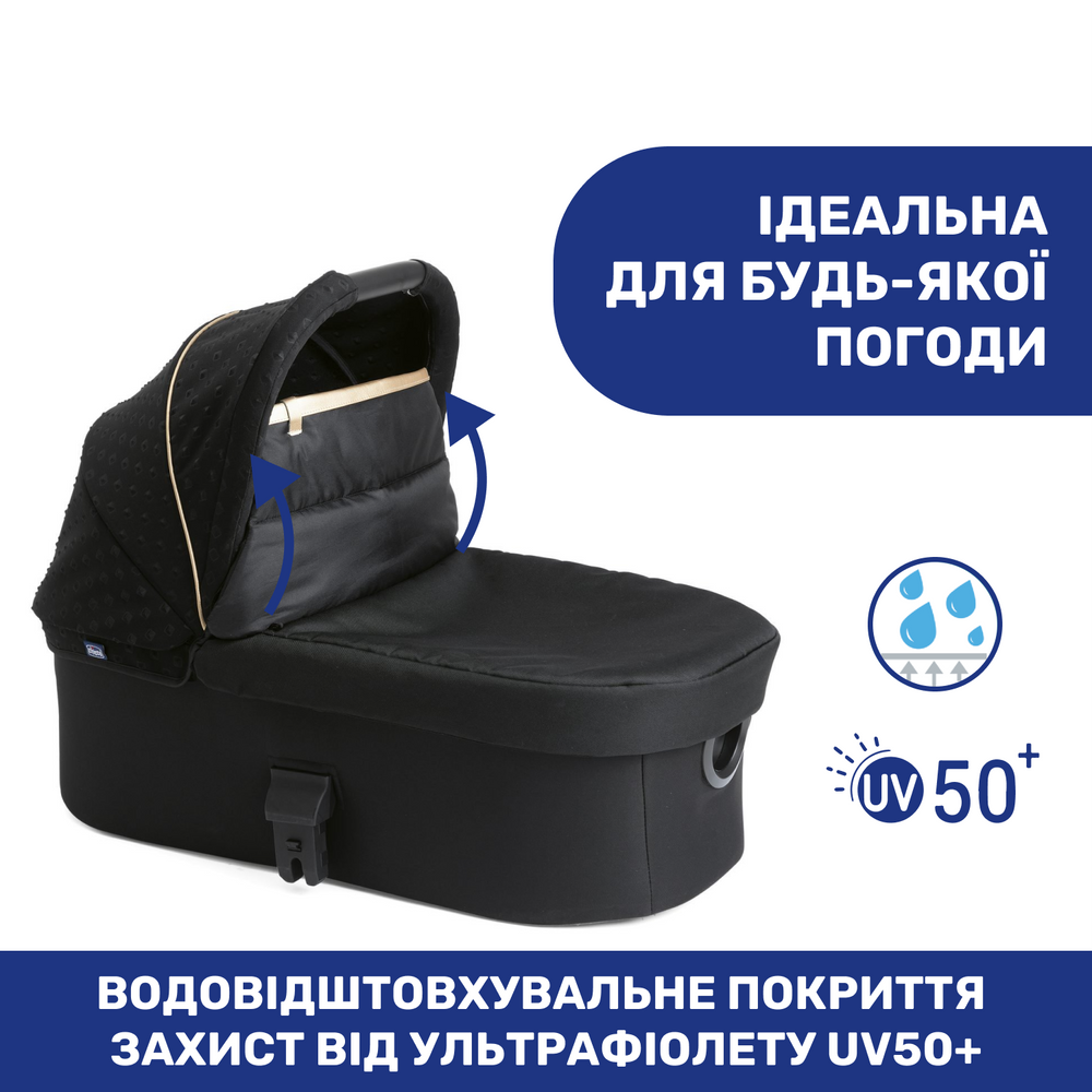 ✔ Легка конструкція (всього 3.8 кг) і вбудована в капюшон пластикова ручка дають змогу переносити дитину в люльці
