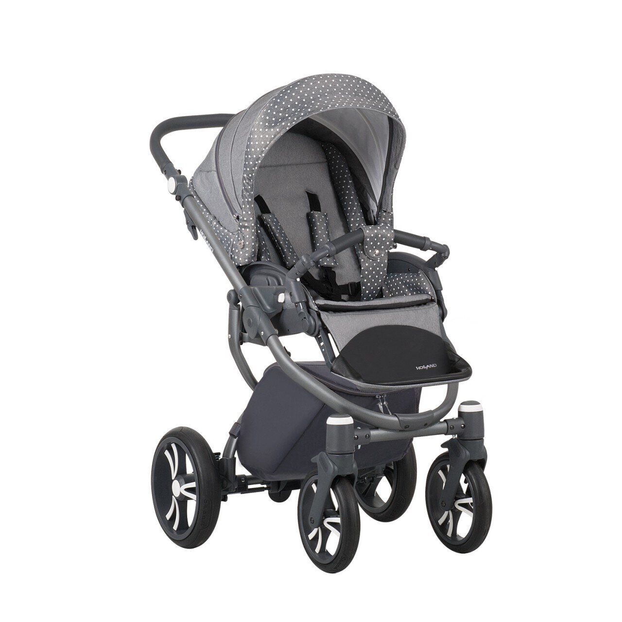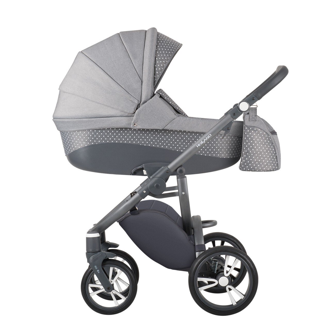 Продумано все до дрібниць: сумка-кошик для покупок - знімна, практичні матеріали легко чистяться, а рама захищена від подряпин завдяки сучасній порошкової системі фарбування. Універсальна коляска Holland відмінно підійде для молодих і активних сімей.