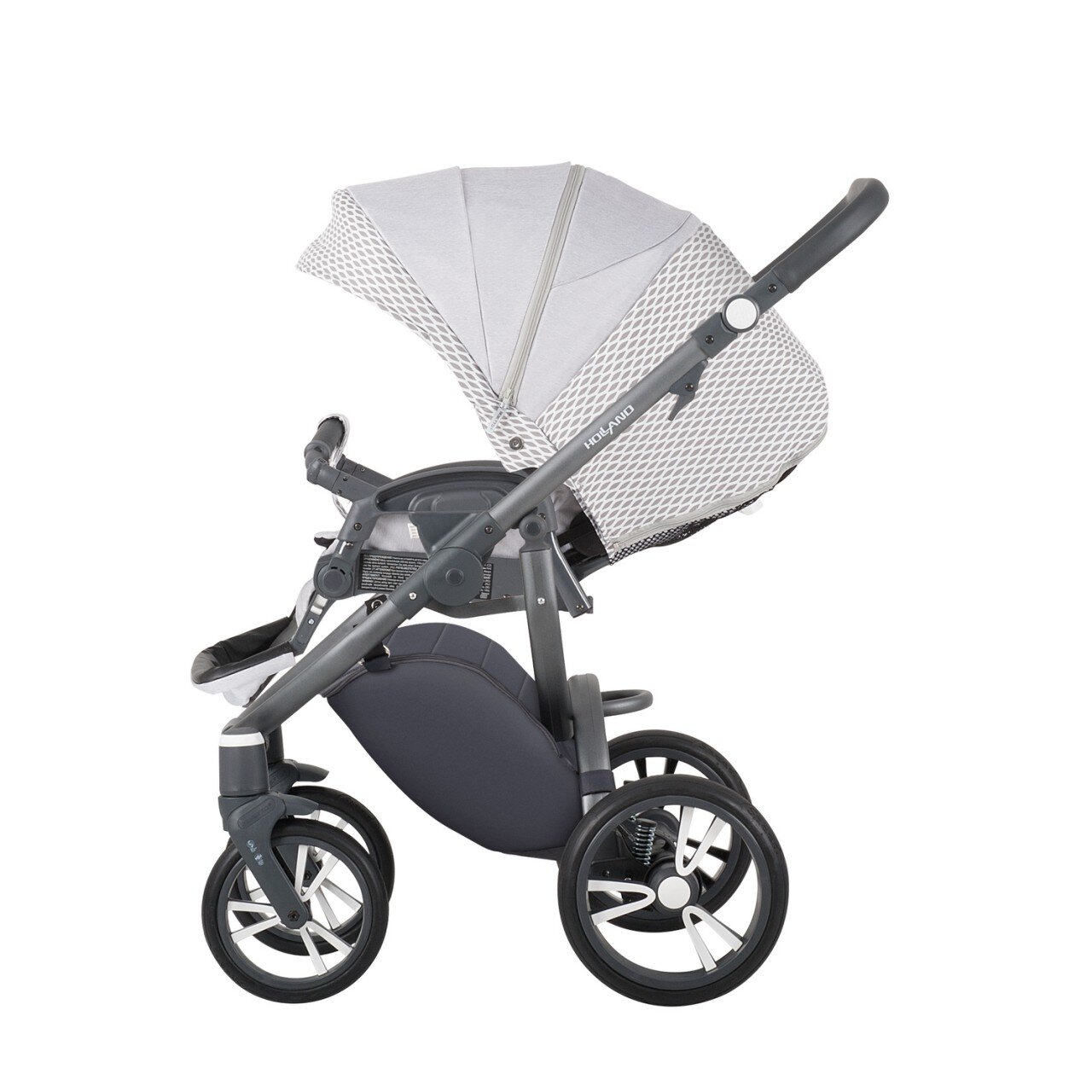 Продумано все до дрібниць: сумка-кошик для покупок - знімна, практичні матеріали легко чистяться, а рама захищена від подряпин завдяки сучасній порошкової системі фарбування. Універсальна коляска Holland відмінно підійде для молодих і активних сімей.