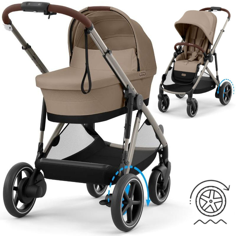 Коляска Cybex eGazelle S 2 в 1 комплектується: шасі з колесами, люлька, прогулянковий блок з бампером, нижня корзина для покупок + додатковий кошик для покупок.
